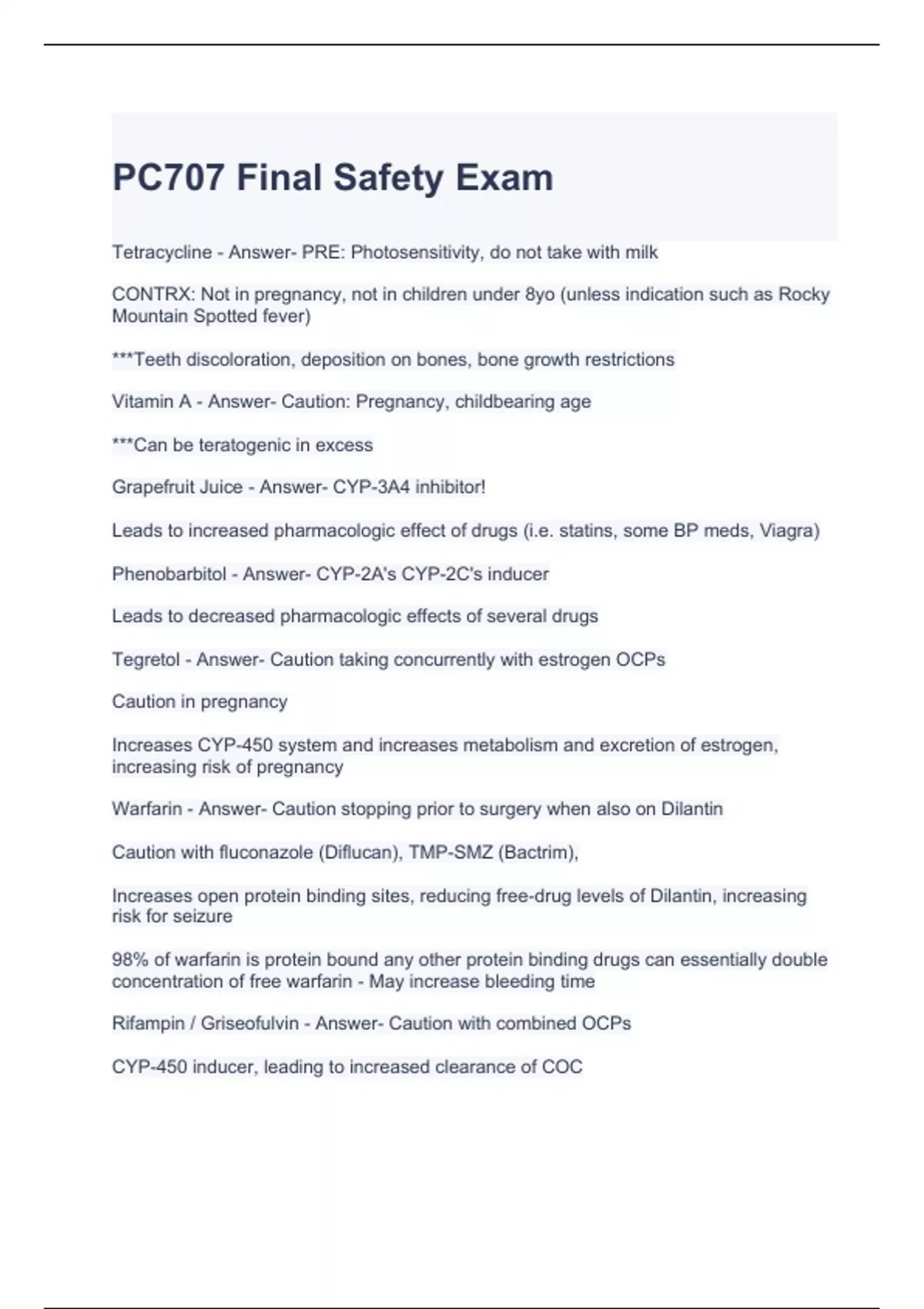 PC707 Final Safety Exam with complete solutions