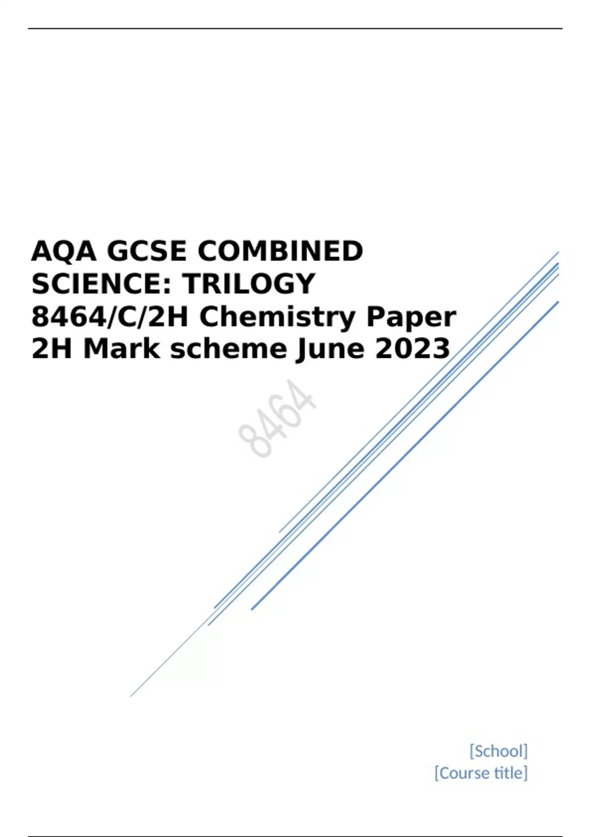 AQA GCSE COMBINED SCIENCE: TRILOGY 8464/C/2H Chemistry Paper 2H Mark scheme June 2023