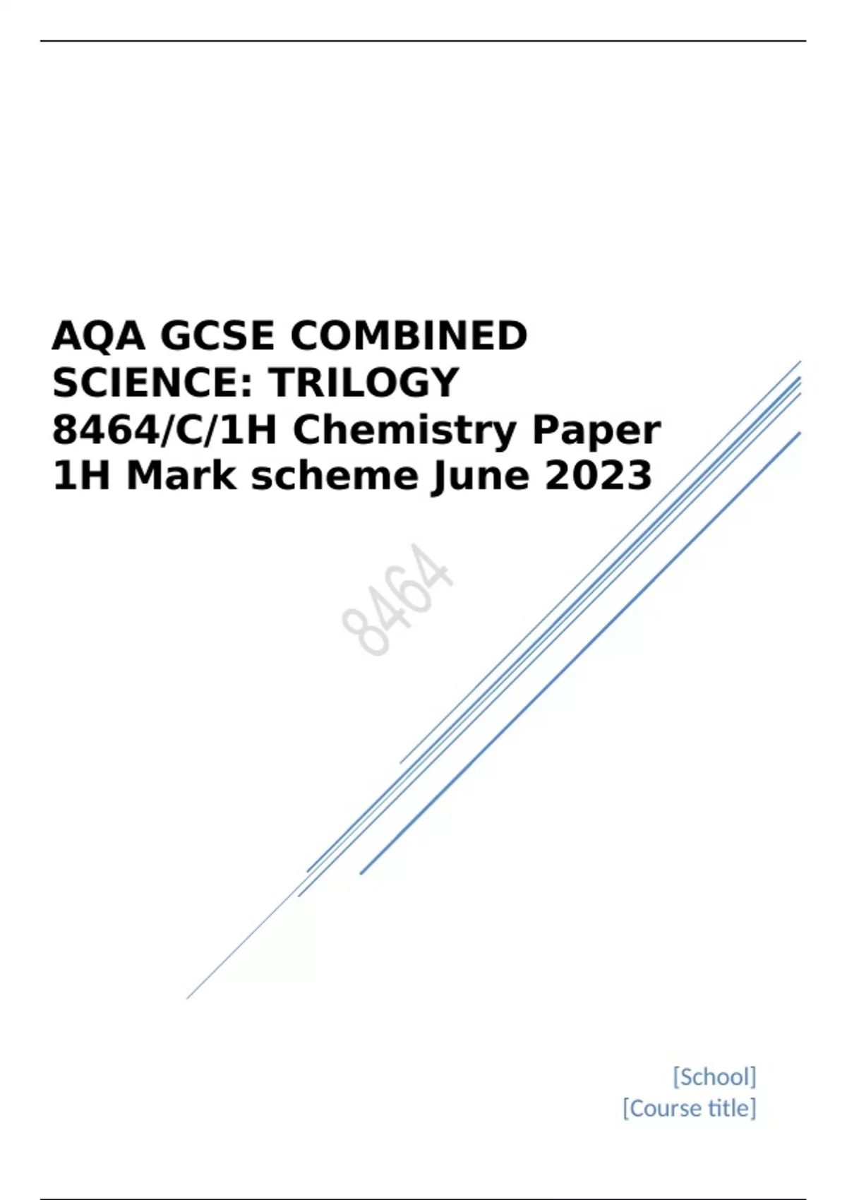 AQA GCSE COMBINED SCIENCE: TRILOGY 8464/C/1H Chemistry Paper 1H Mark scheme June 2023