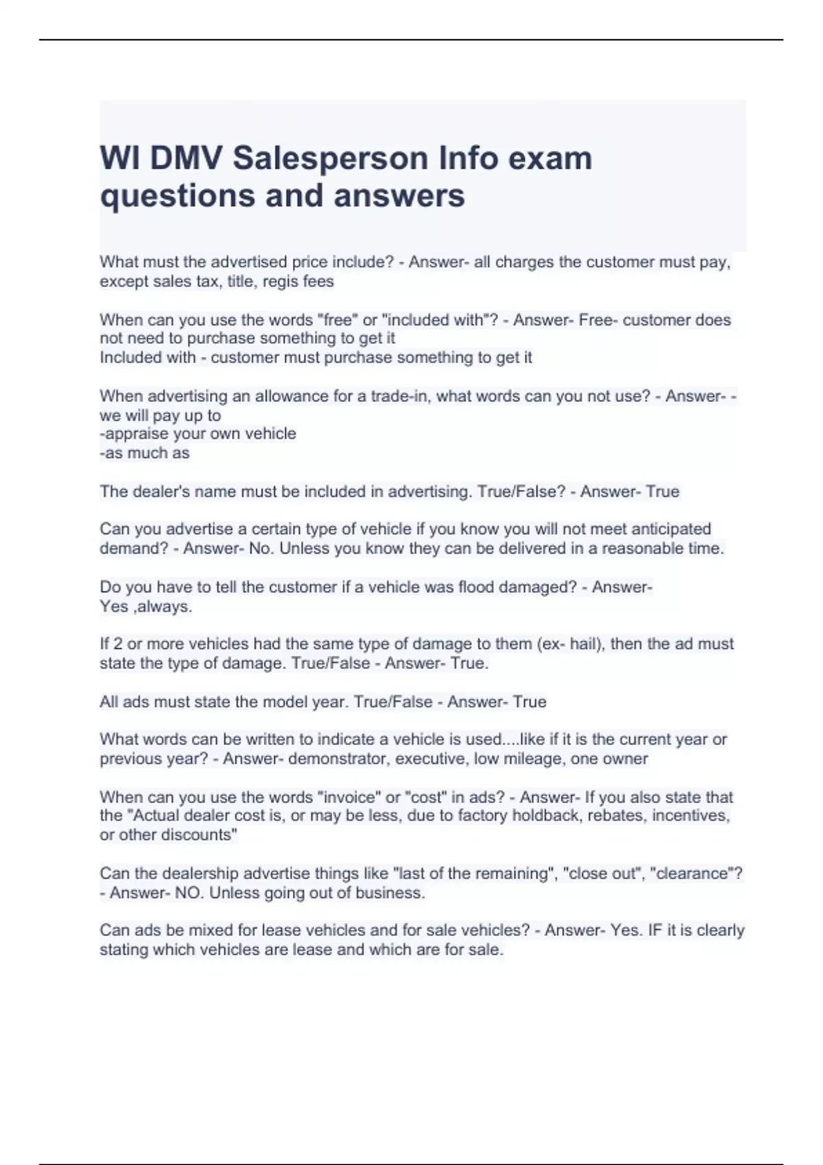 Wisconsin Motor Vehicle Salesperson /Car Dealer License Exam Bundle