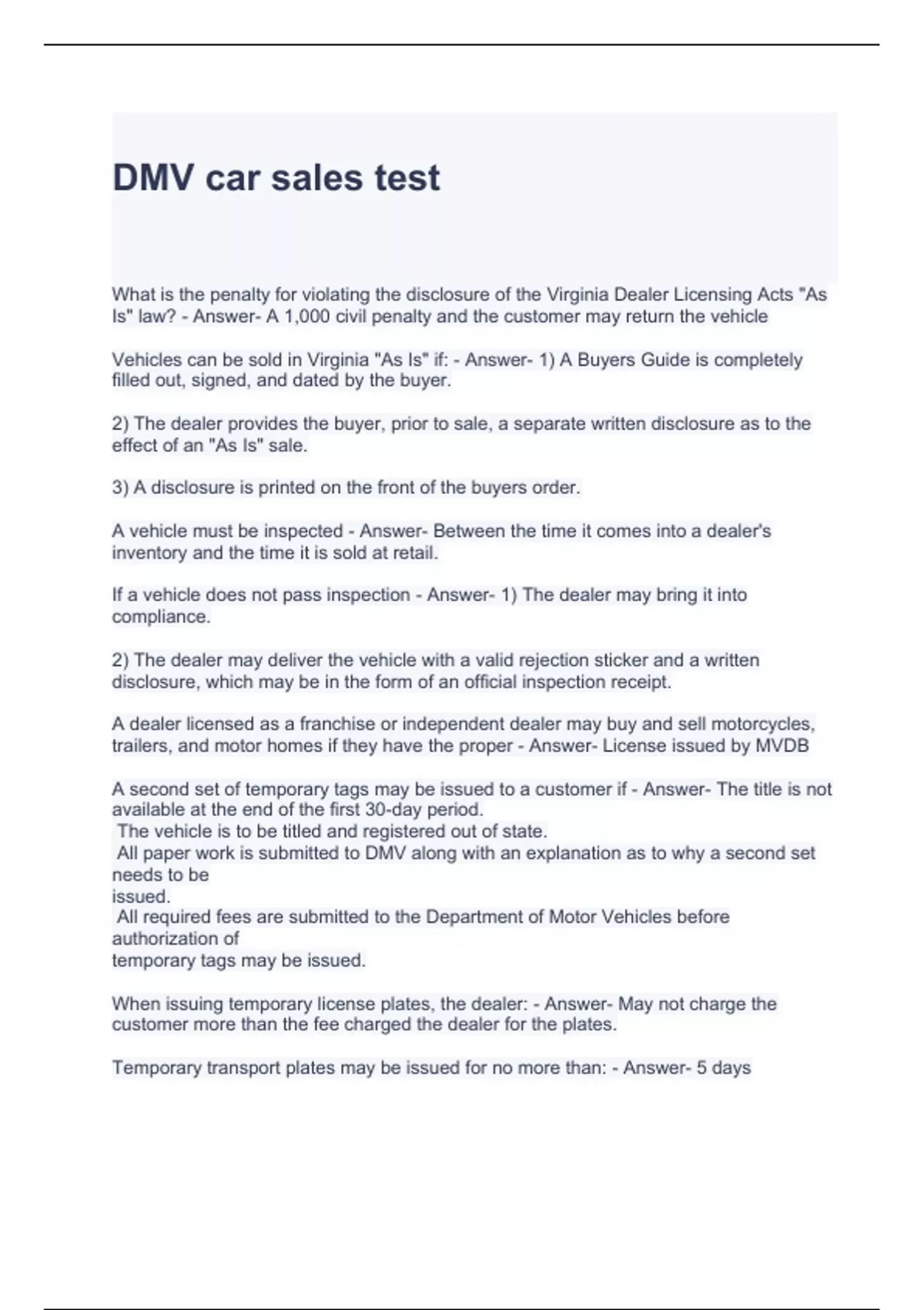 Exam of 4 pages for the course Car Dealer License at Car Dealer License (DMV car sales test)