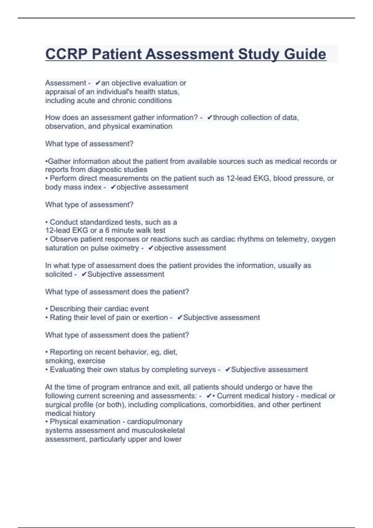 CCRP Patient Assessment Study Guide.