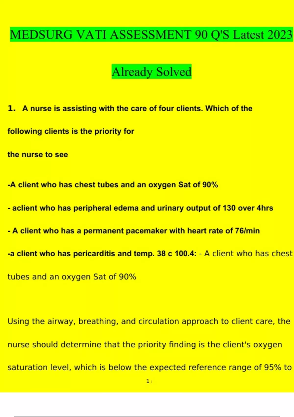 MEDSURG VATI ASSESSMENT 90 Q'S EXAM FULLY SOLVED