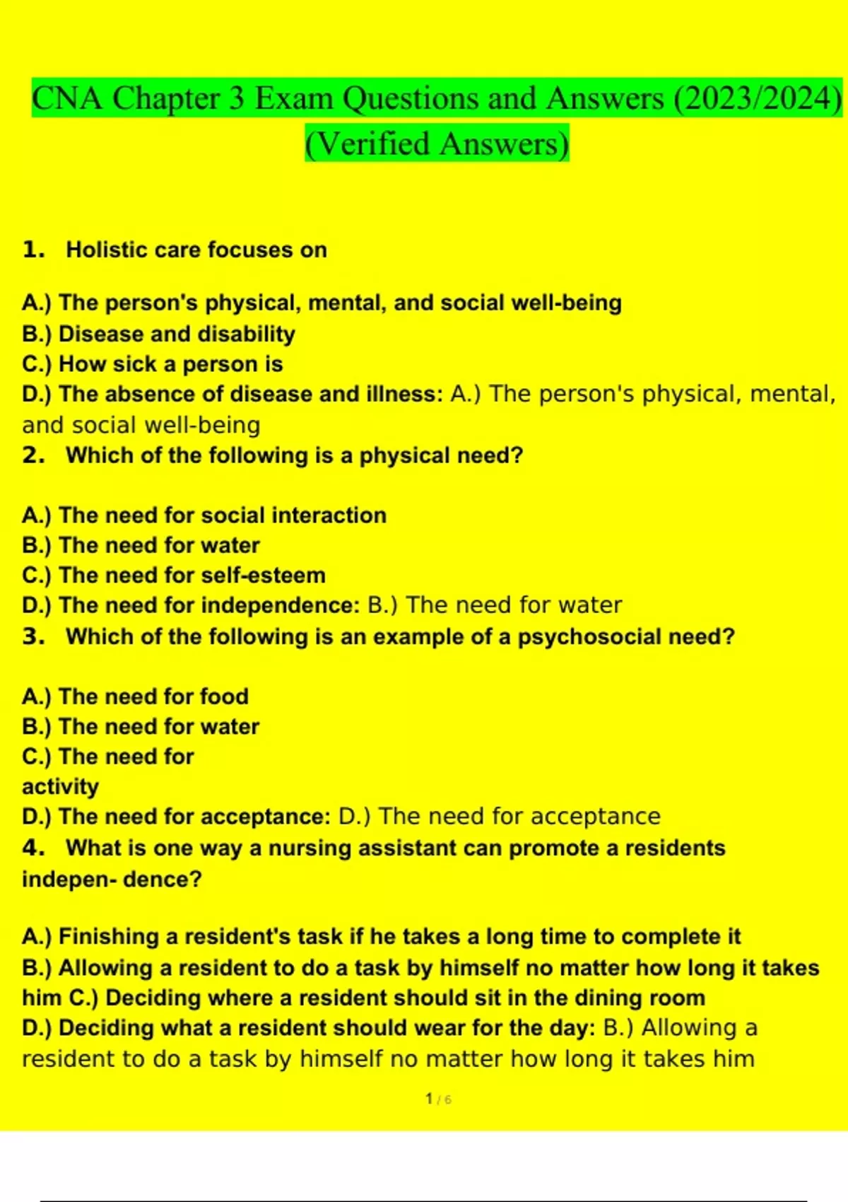 CNA Chapter 3 Exam Questions and Answers