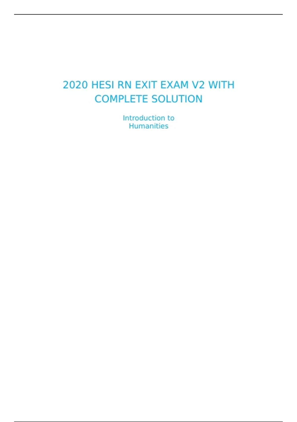 2020 HESI RN EXIT EXAM V2 WITH COMPLETE SOLUTION Introduction to Humanities