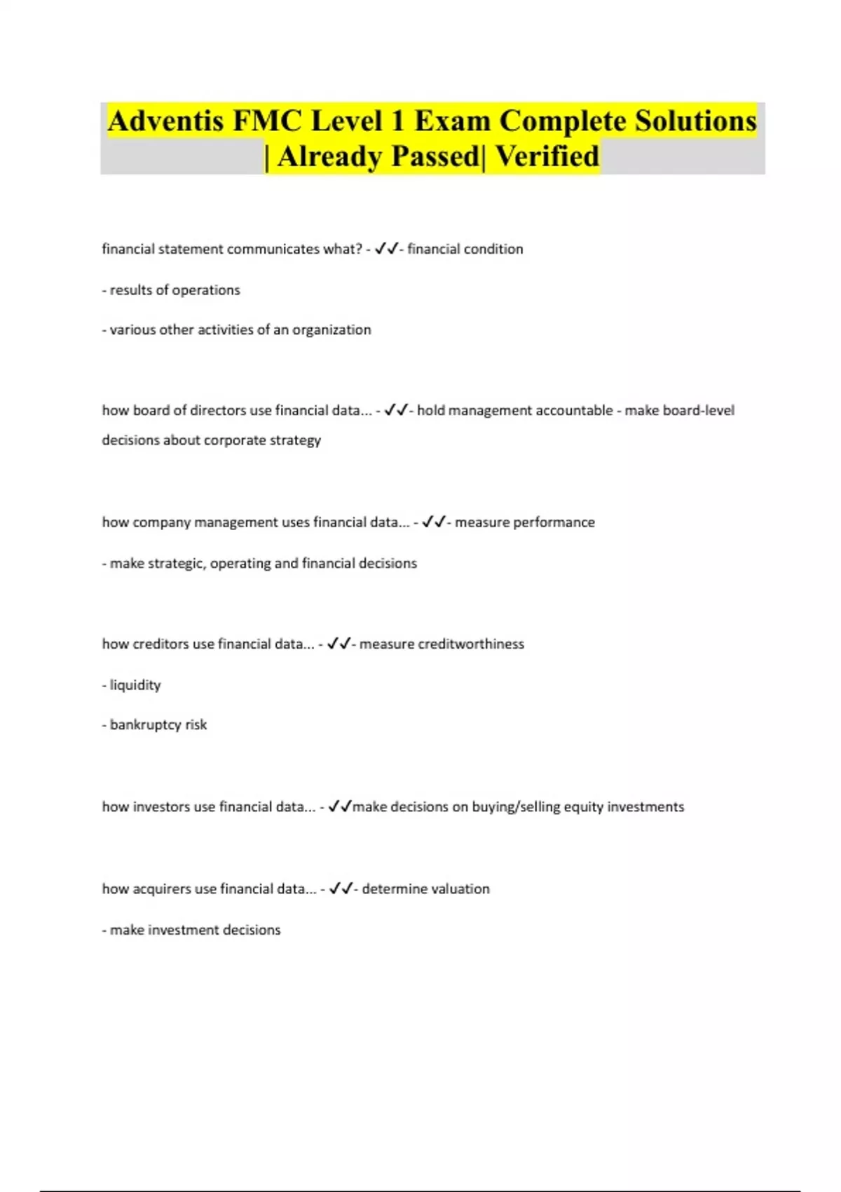 adventis fmc level 1 exam complete solutions