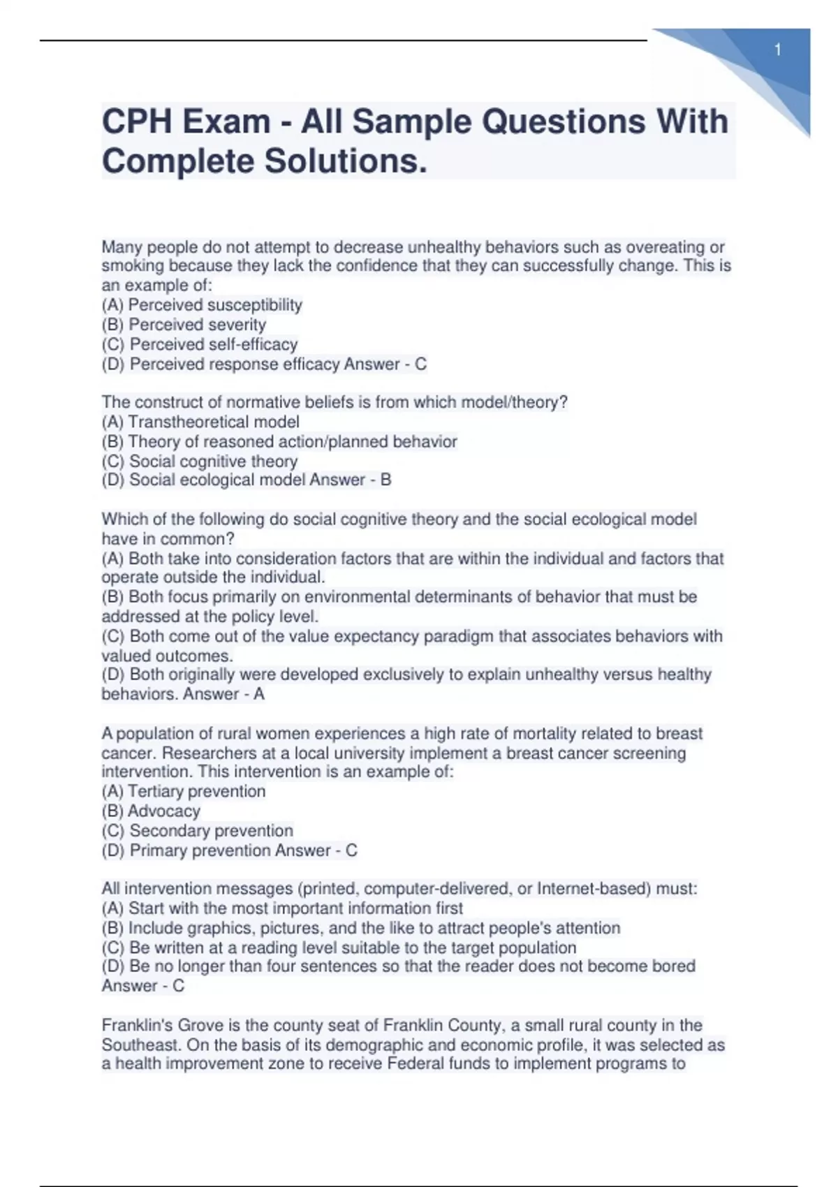 CPH Exam - All Sample Questions With Complete Solutions Graded A+