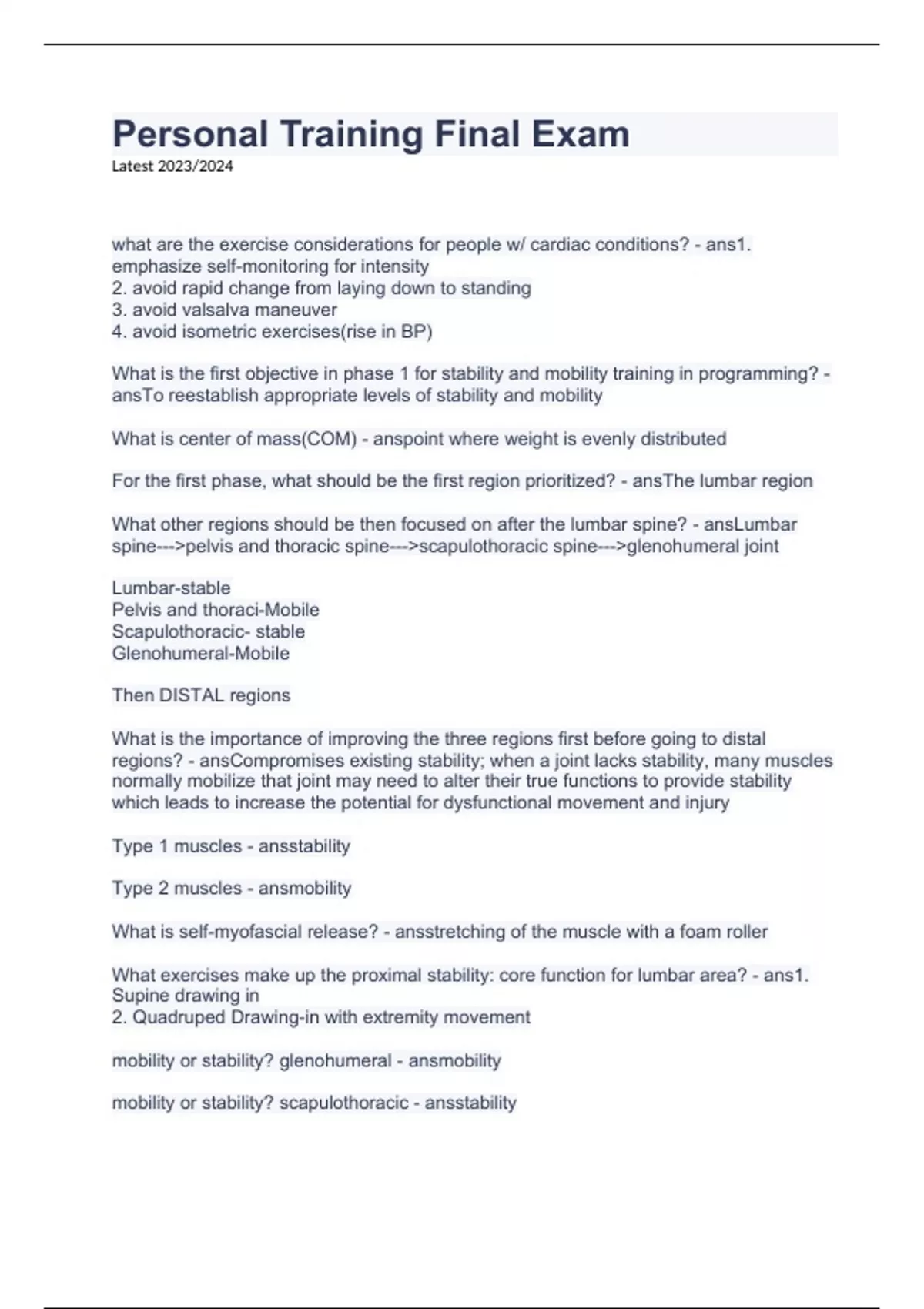 Personal Training Final Exam.