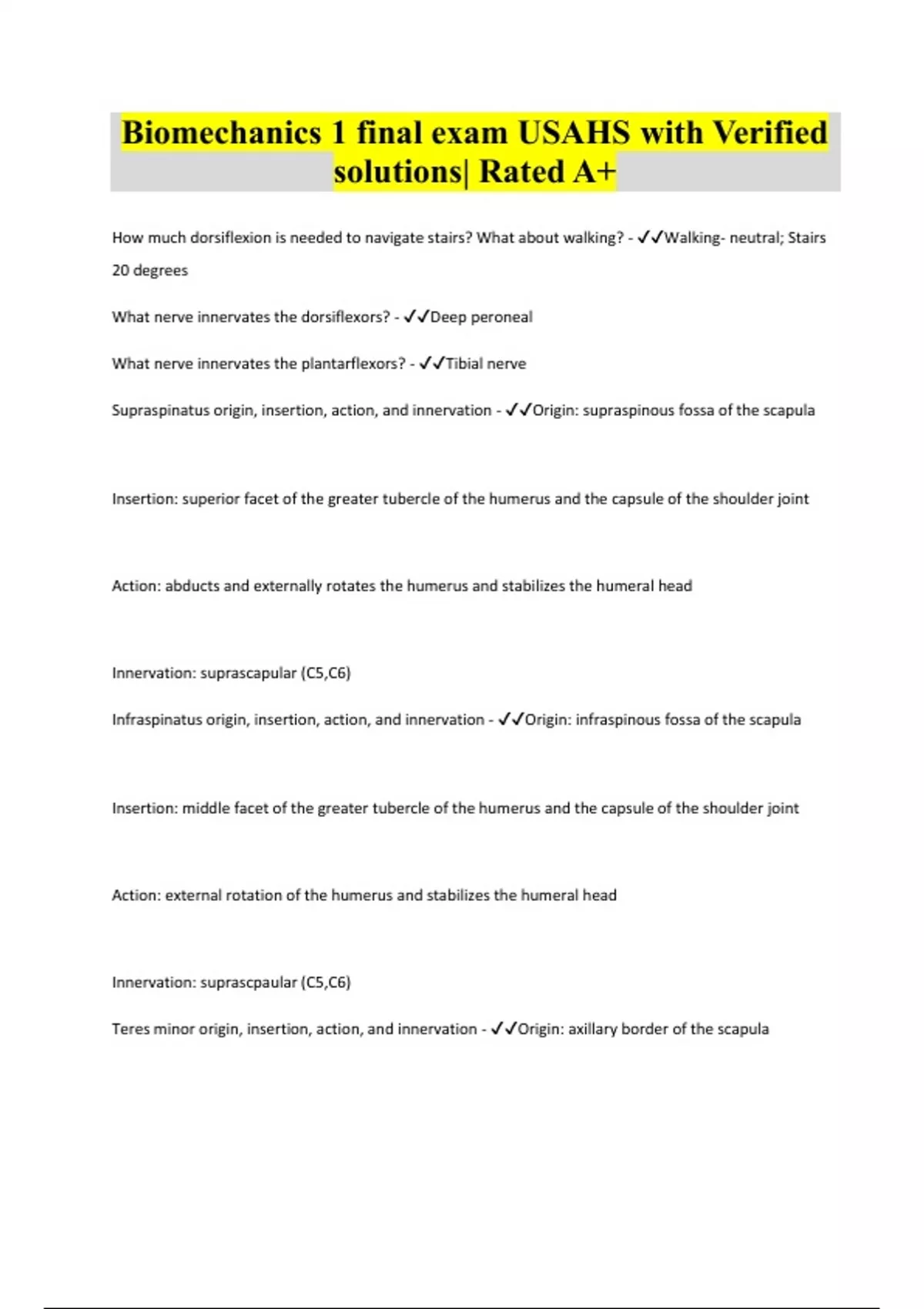 Biomechanics 1 final exam USAHS with Verified solutions| Rated A+