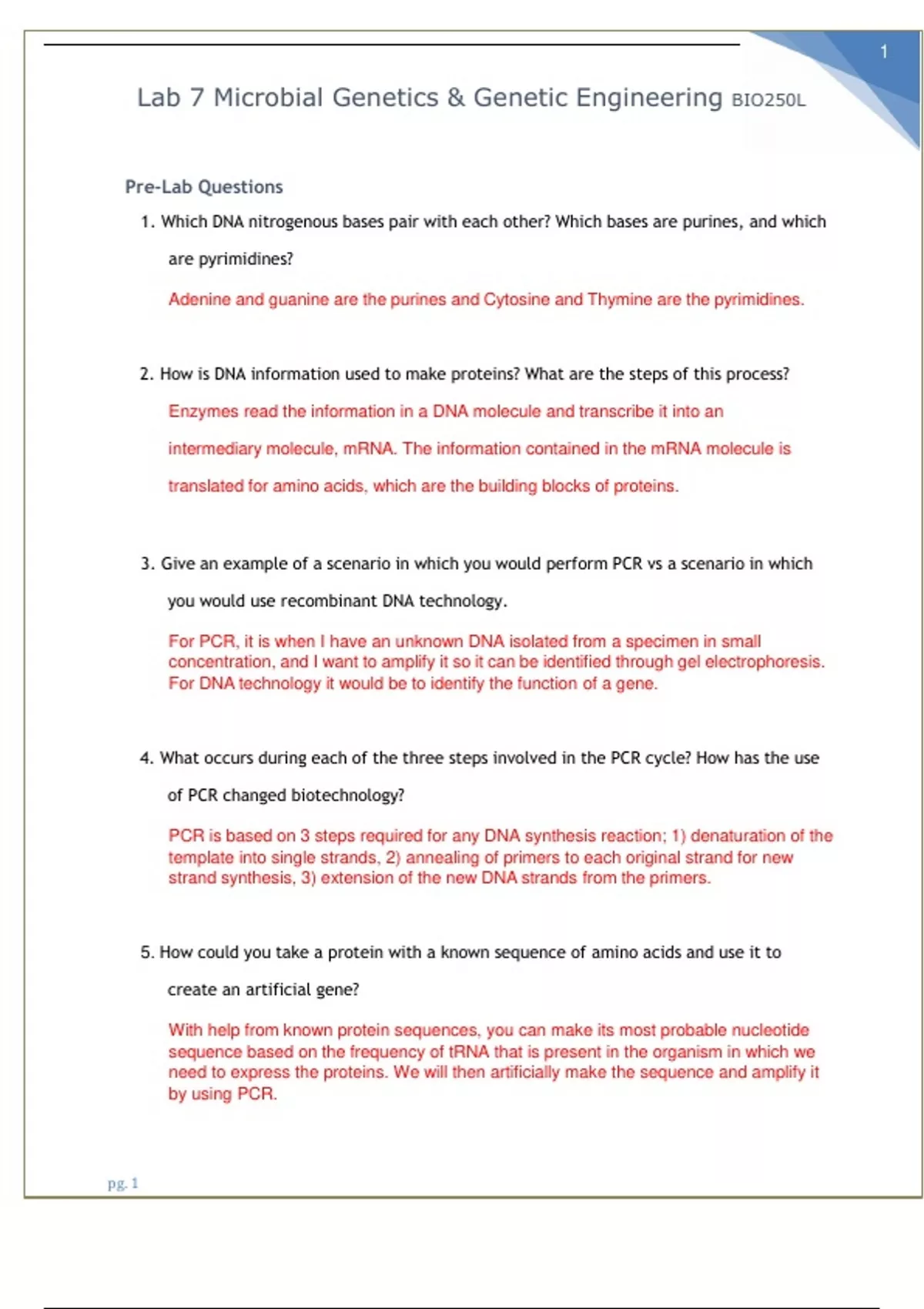 Lab 7 Microbial Genetics & Genetic Engineering BIO250L graded A+