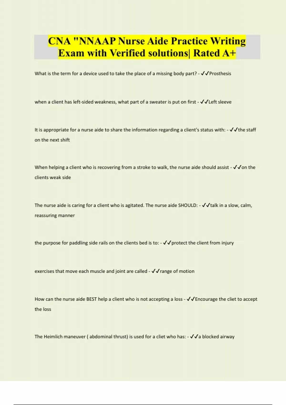 CNA "NNAAP Nurse Aide Practice Writing Exam with Verified solutions| Rated A+