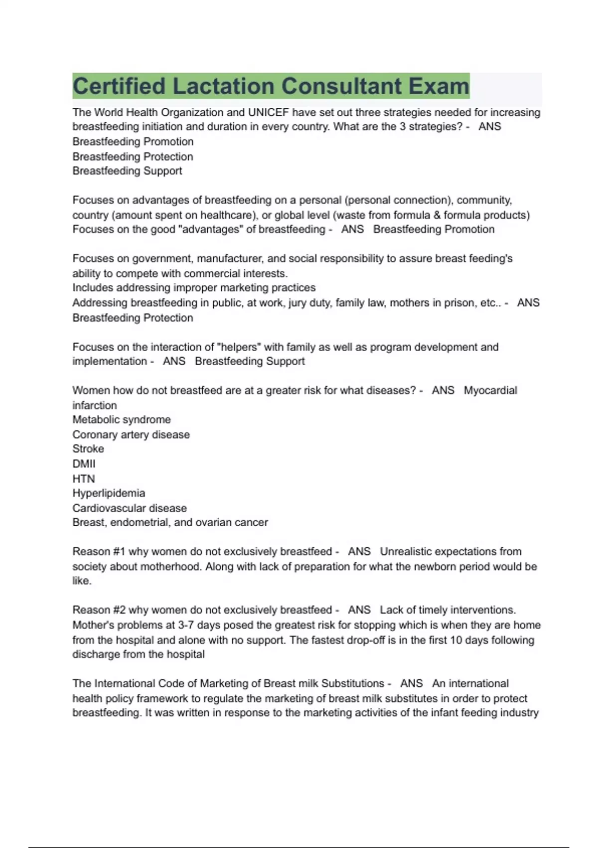 Certified Lactation Consultant Exam 2024 Latest Questions and Answers (Verified by Expert)