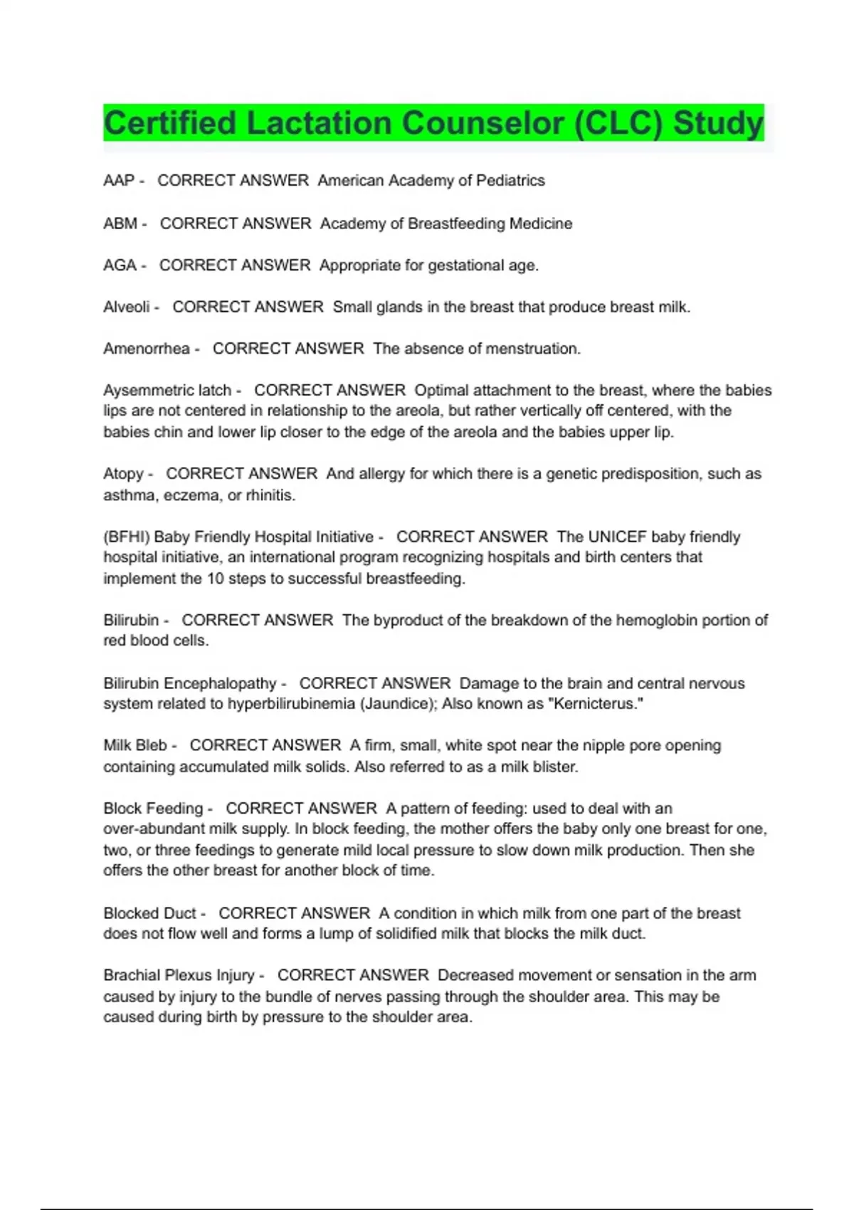 2024 Certified Lactation Counselor (CLC) Study Latest Questions and Answers (Verified by Expert)