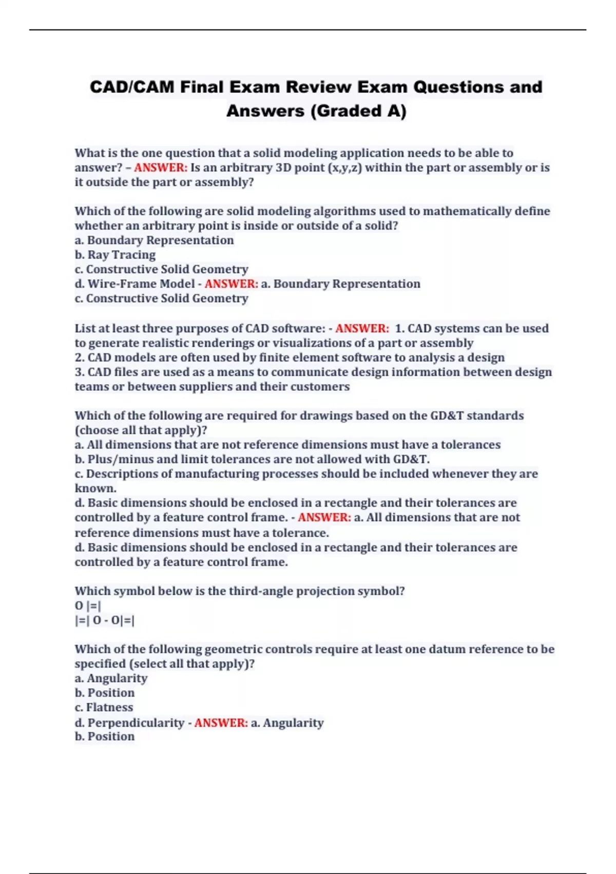 CAD/CAM Final Exam Review Exam Questions and Answers (Graded A)