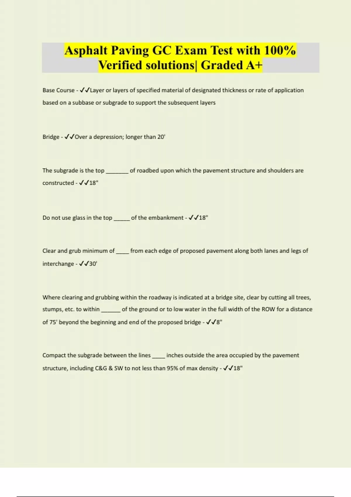 Asphalt Paving GC Exam Test with 100% Verified solutions| Graded A+