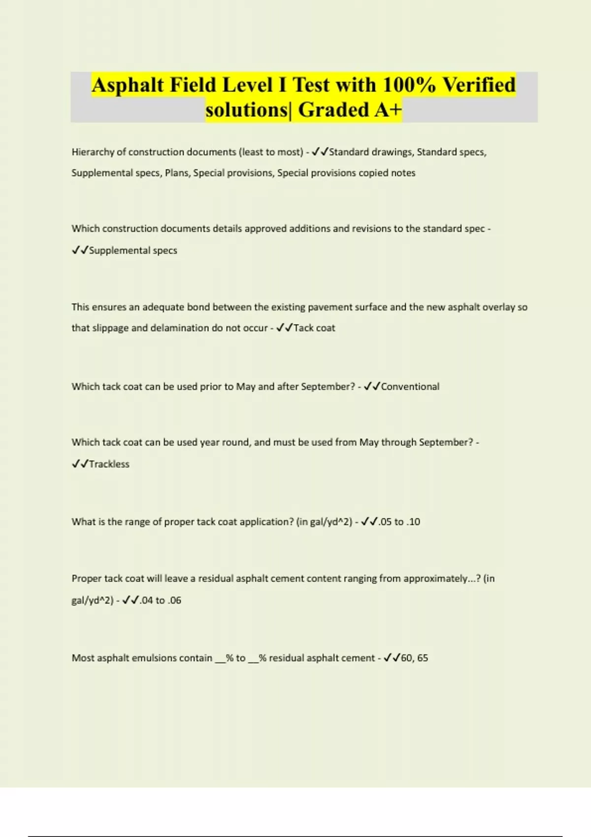 Asphalt Field Level I Test with 100% Verified solutions| Graded A+