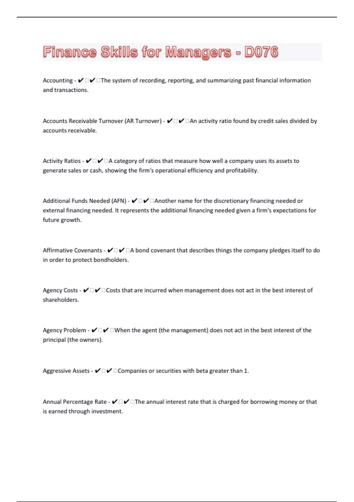 Finance Skills for Managers - D076 |200 Questions with 100% Correct Answers | Verified | Latest Update