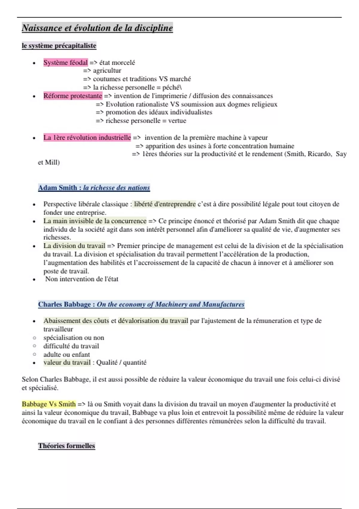 • La division du travail => Premier principe de management est celui de la division et de la spécialisation