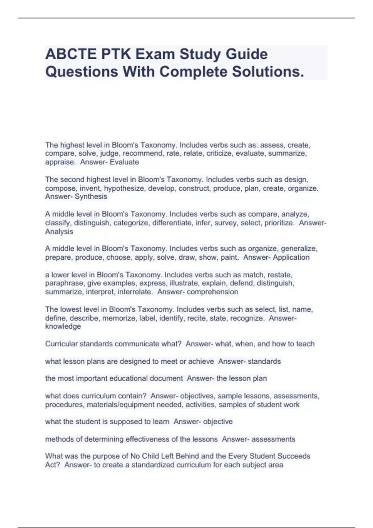 ABCTE PTK Exam Study Guide Questions With Complete Solutions.