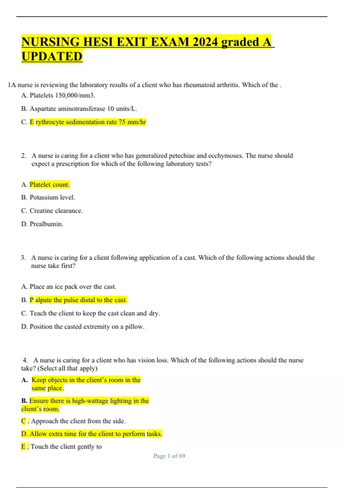 NURSING HESI EXIT EXAM 2024 graded A UPDATEDNURSING HESI EXIT EXAM 2024 graded A UPDATED