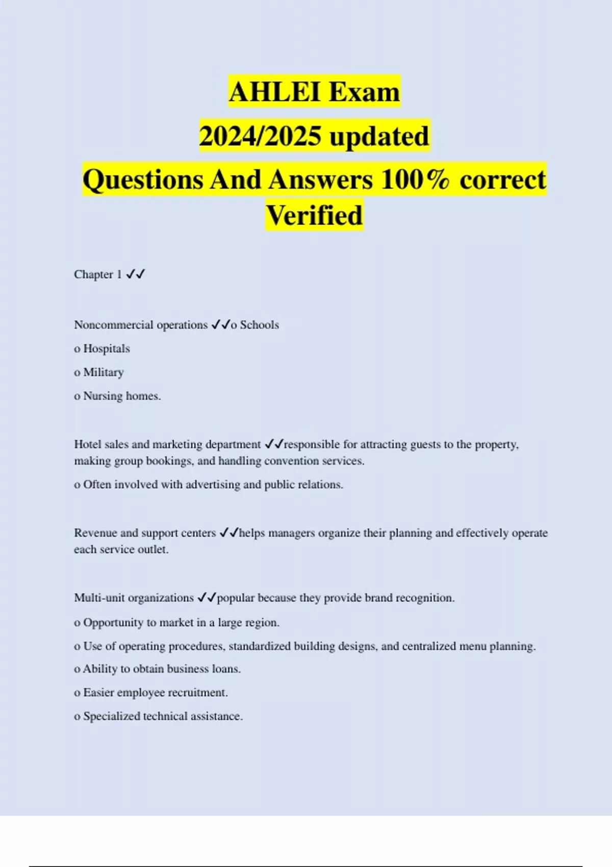 AHLEI Exam 2024/2025 updated Questions And Answers 100% correct Verified