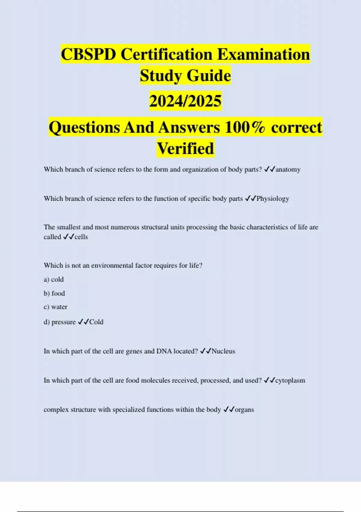 CBSPD Certification Examination Study Guide 2024/2025 Questions And Answers 100% correct Verified
