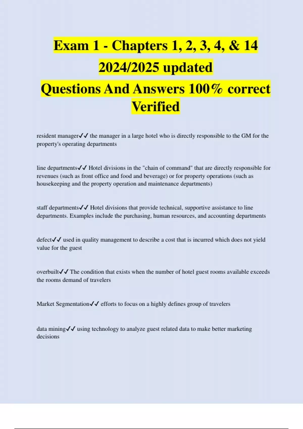 Exam 1 - Chapters 1, 2, 3, 4, & 14 2024/2025 updated Questions And Answers 100% correct Verified