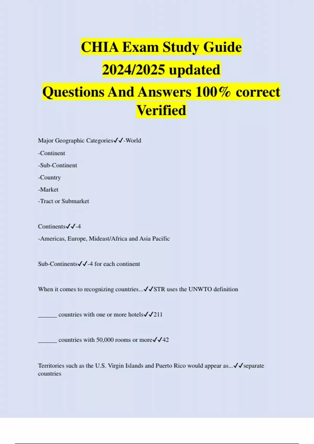 CHIA Exam Study Guide 2024/2025 updated Questions And Answers 100% correct Verified