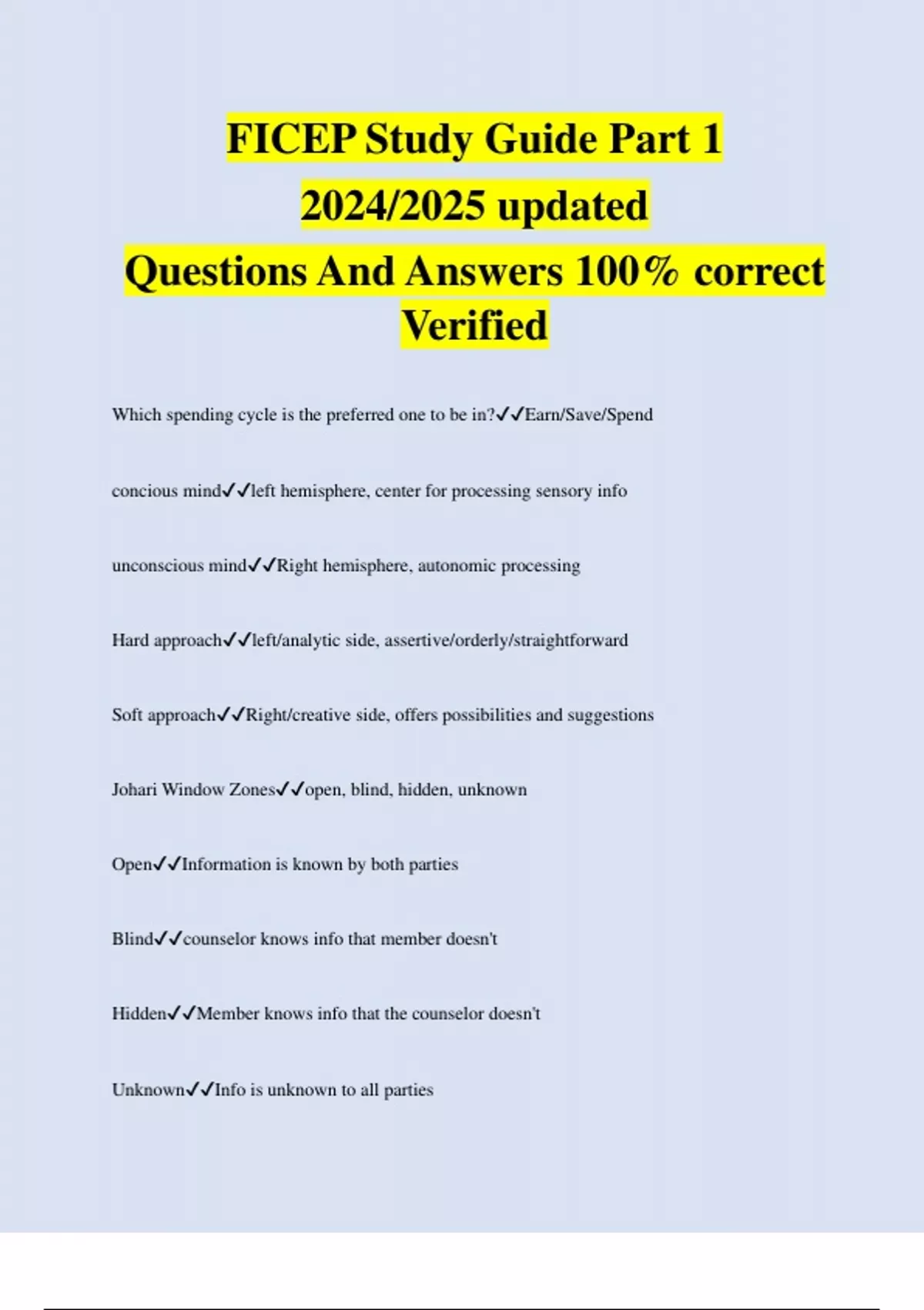 FICEP Study Guide Part 1 2024/2025 updated Questions And Answers 100% correct Verified