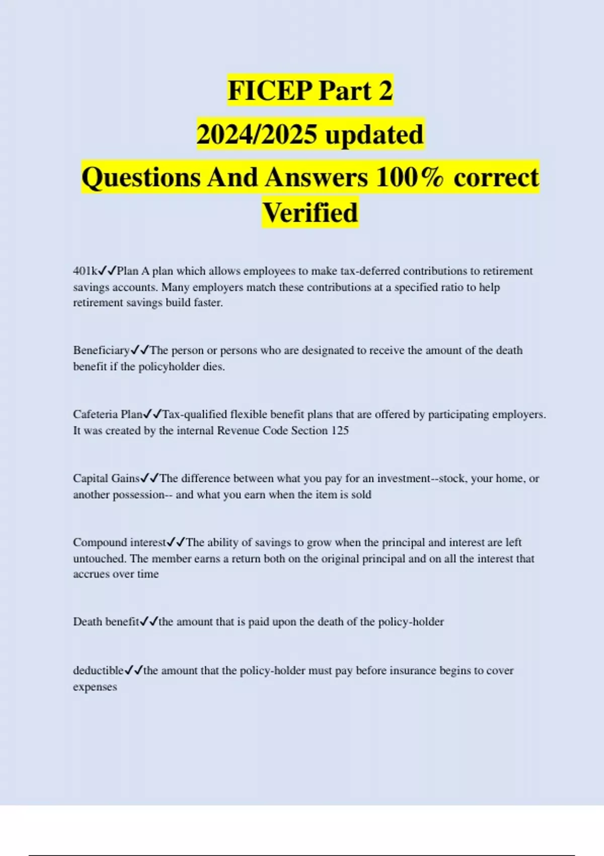 FICEP Part 2 2024/2025 updated Questions And Answers 100% correct Verified