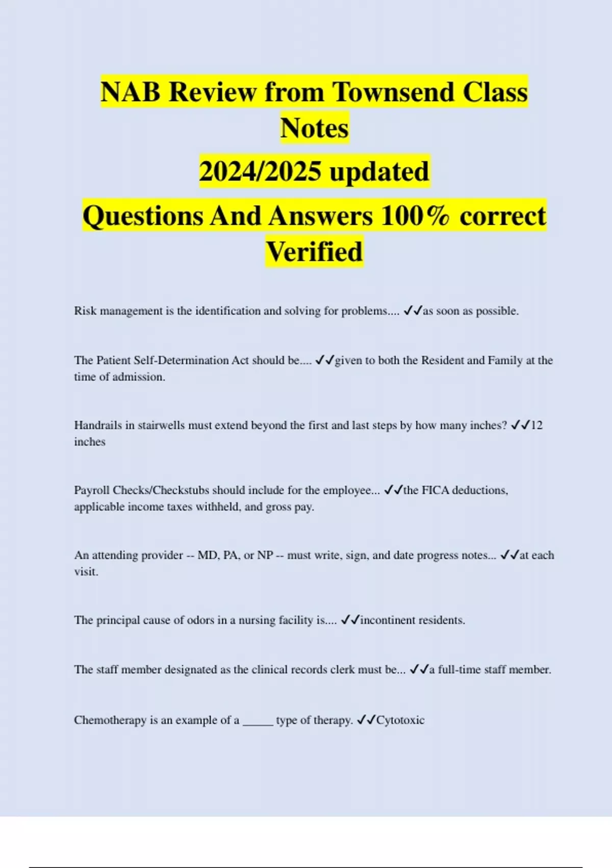 NAB Review from Townsend Class Notes 2024/2025 updated Questions And Answers 100% correct Verified