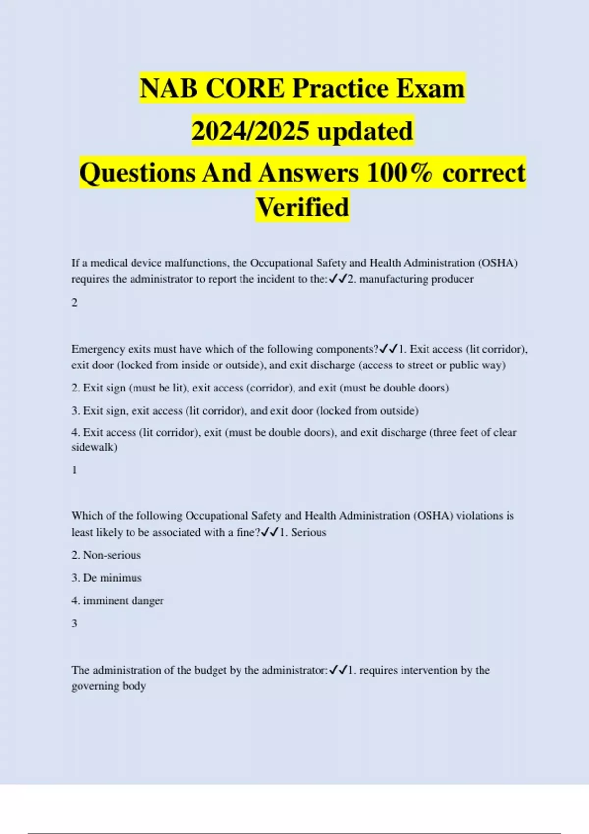 NAB CORE Practice Exam 2024/2025 updated Questions And Answers 100% correct Verified