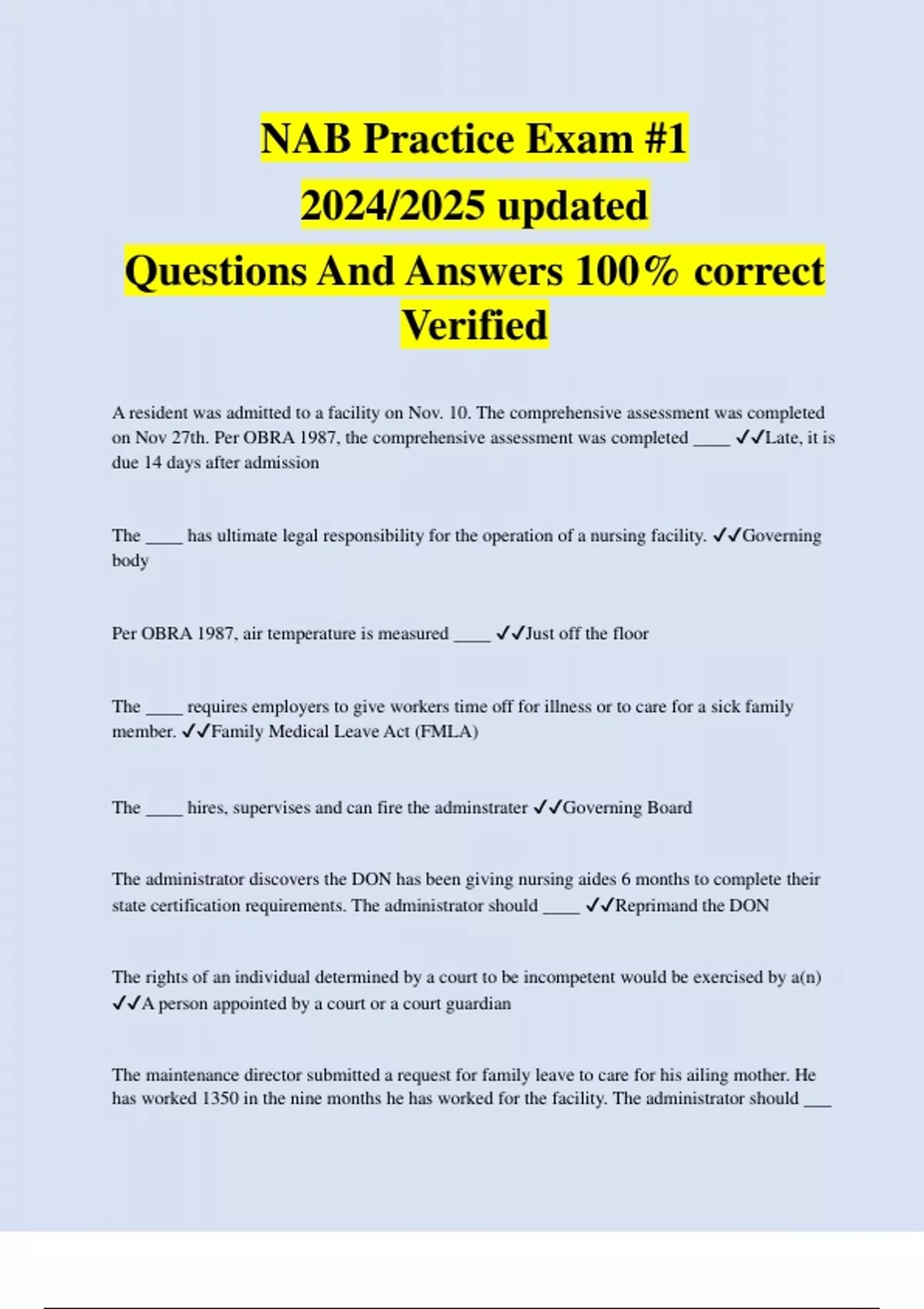 NAB Practice Exam #1 2024/2025 updated Questions And Answers 100% correct Verified