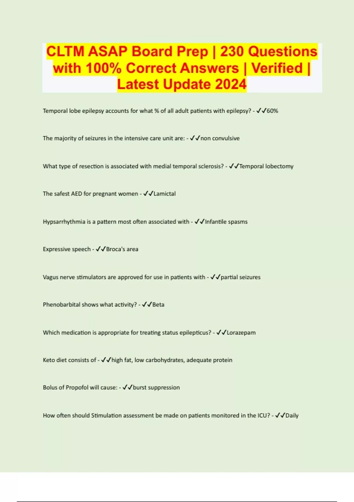 CLTM ASAP Board Prep | 230 Questions with 100% Correct Answers | Verified | Latest Update 2024