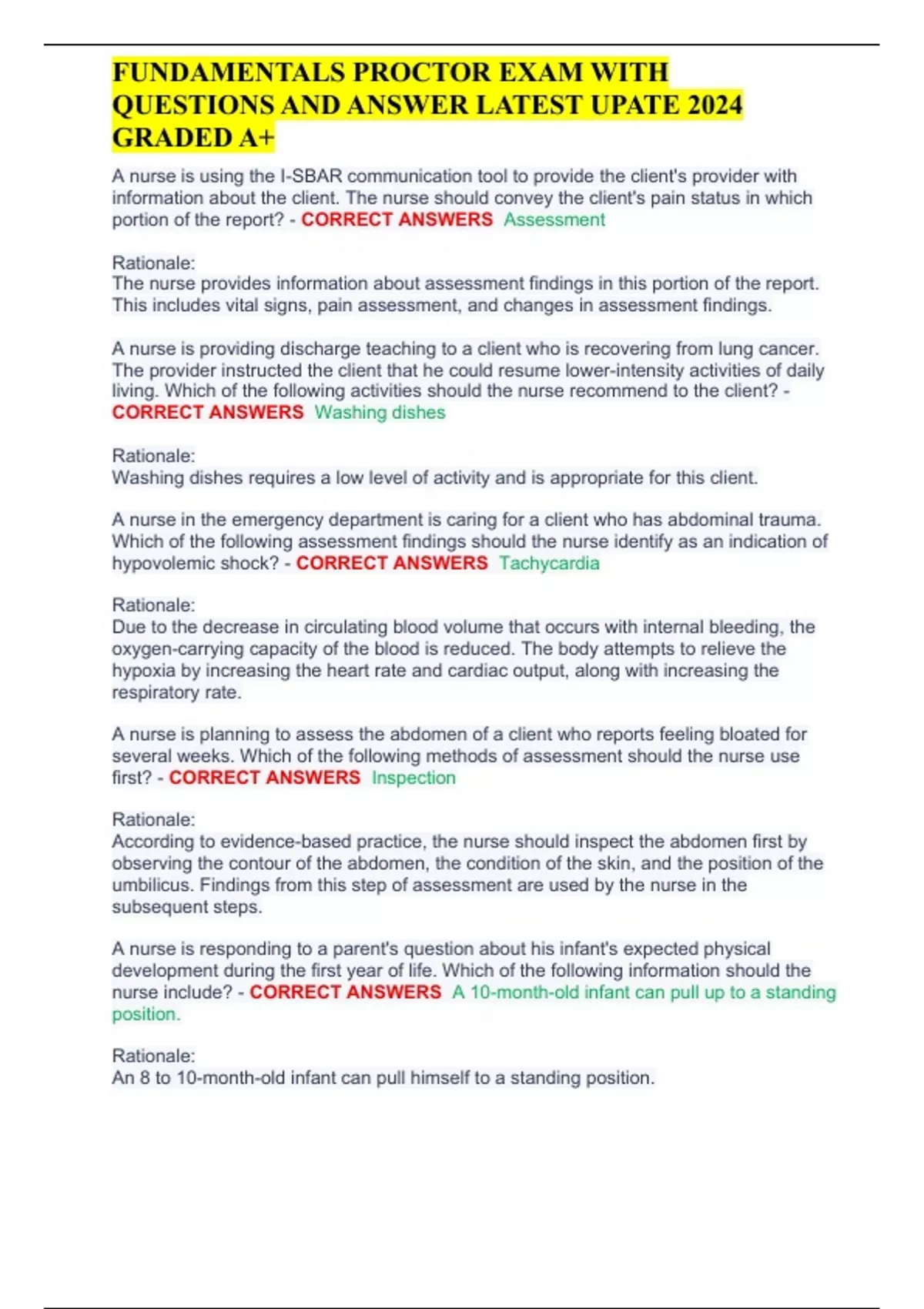 FUNDAMENTALS PROCTOR EXAM WITH QUESTIONS AND ANSWER LATEST UPATE 2024 GRADED A+