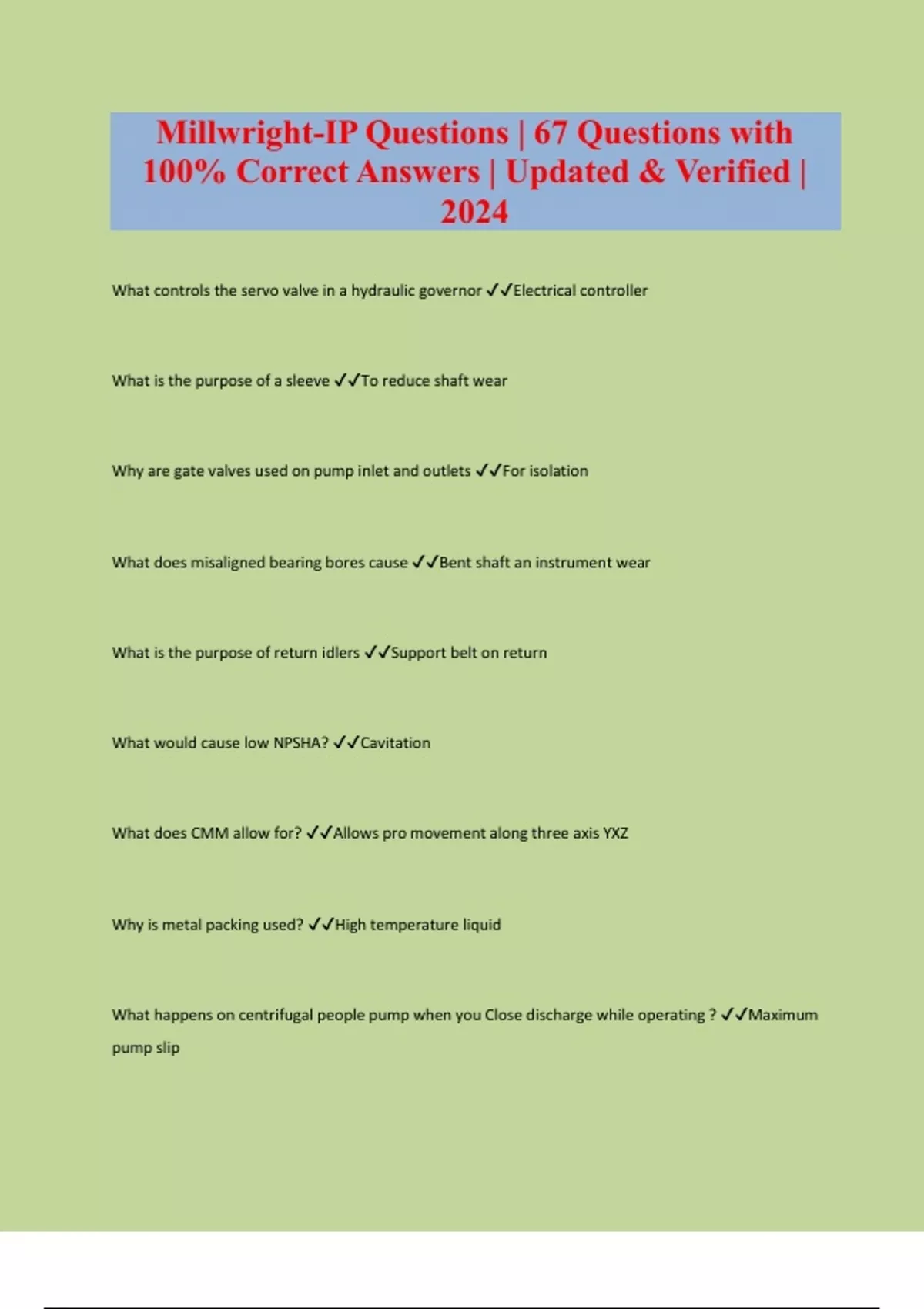 Millwright-IP Questions | 67 Questions with 100% Correct Answers | Updated & Verified | 2024