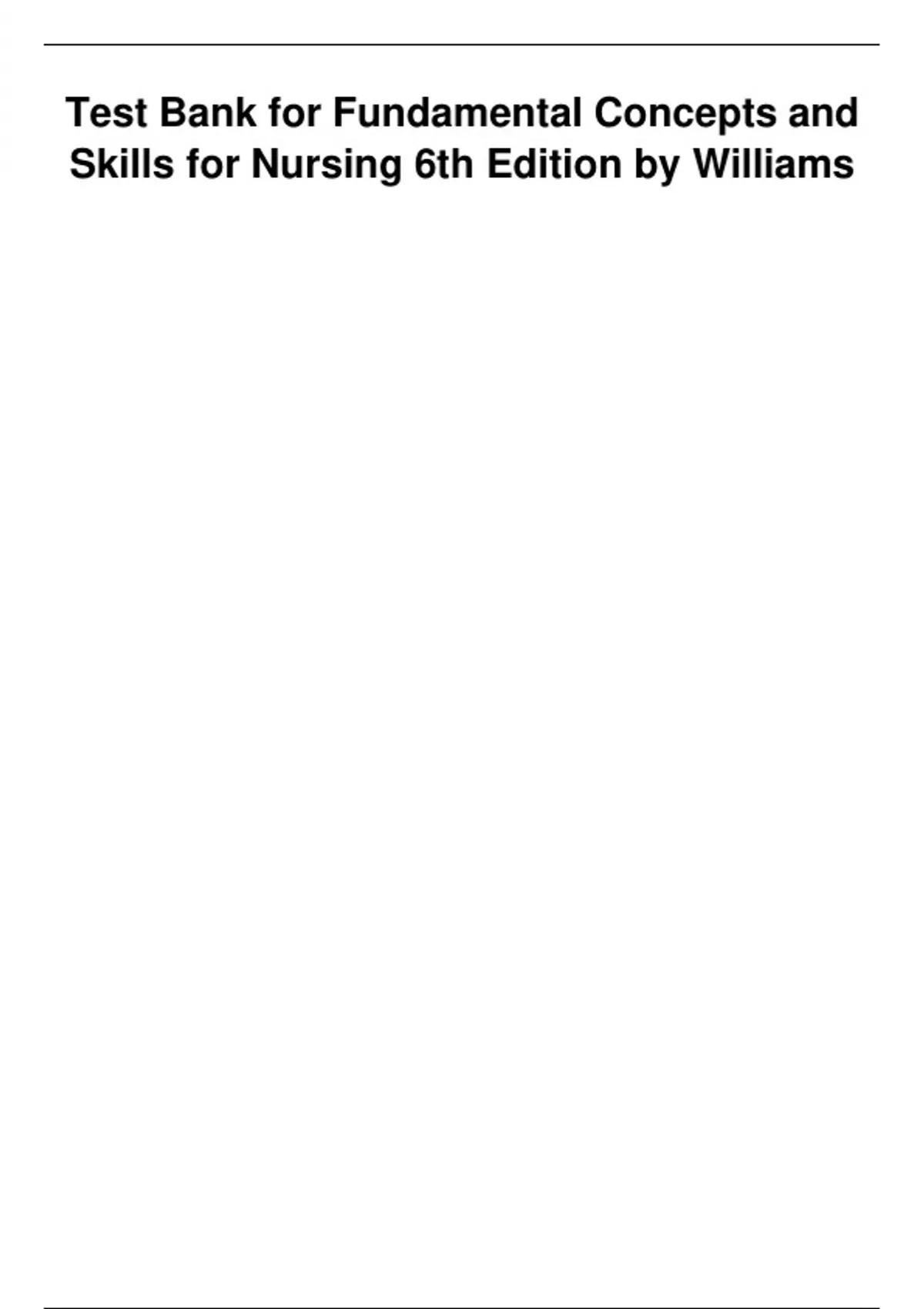 Test Bank For Fundamental Concepts and Skills for Nursing 6th Edition By Patricia A. Williams |All Chapters, Complete , Latest Version 2024