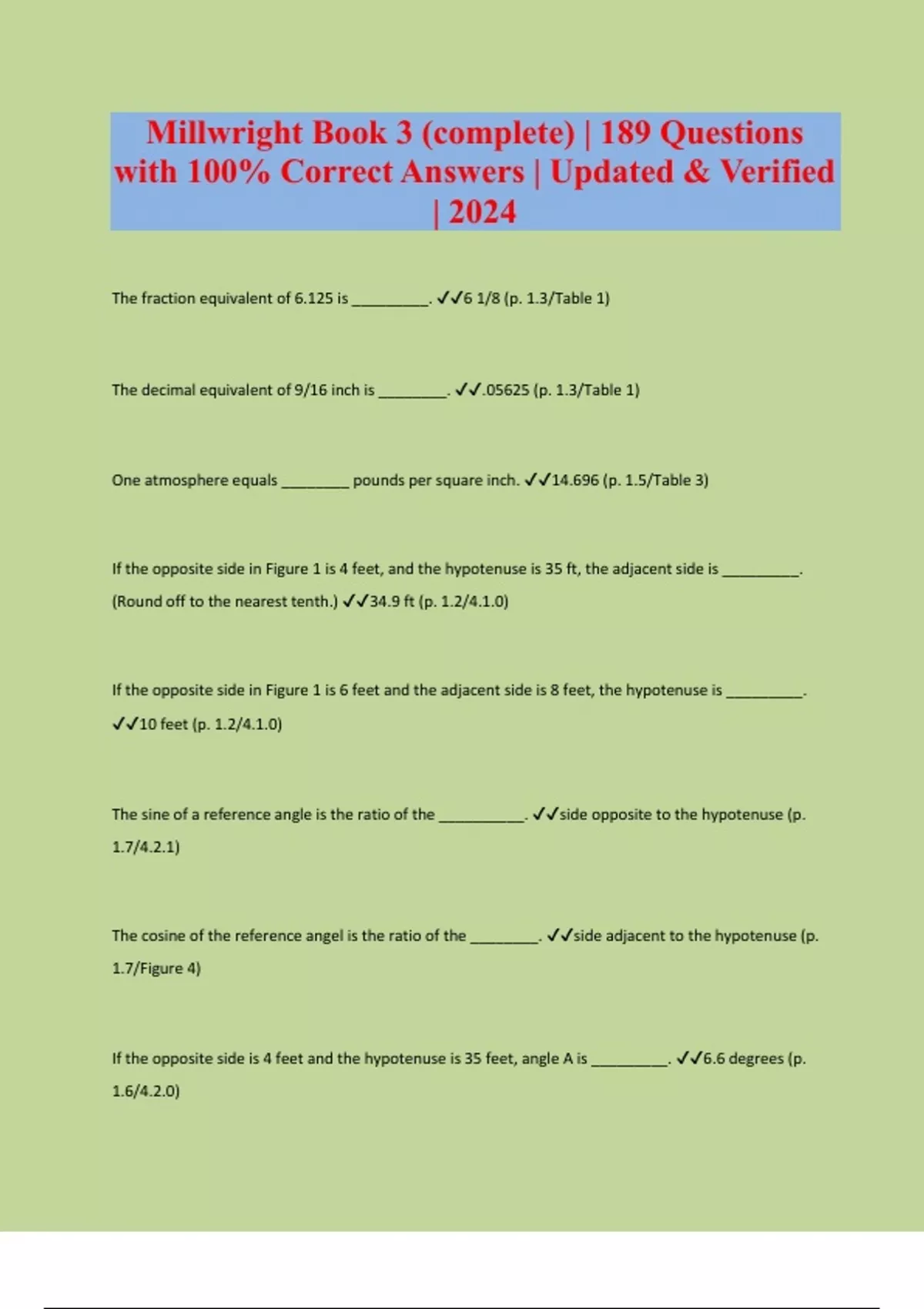 Millwright Book 3 (complete) | 189 Questions with 100% Correct Answers | Updated & Verified | 2024