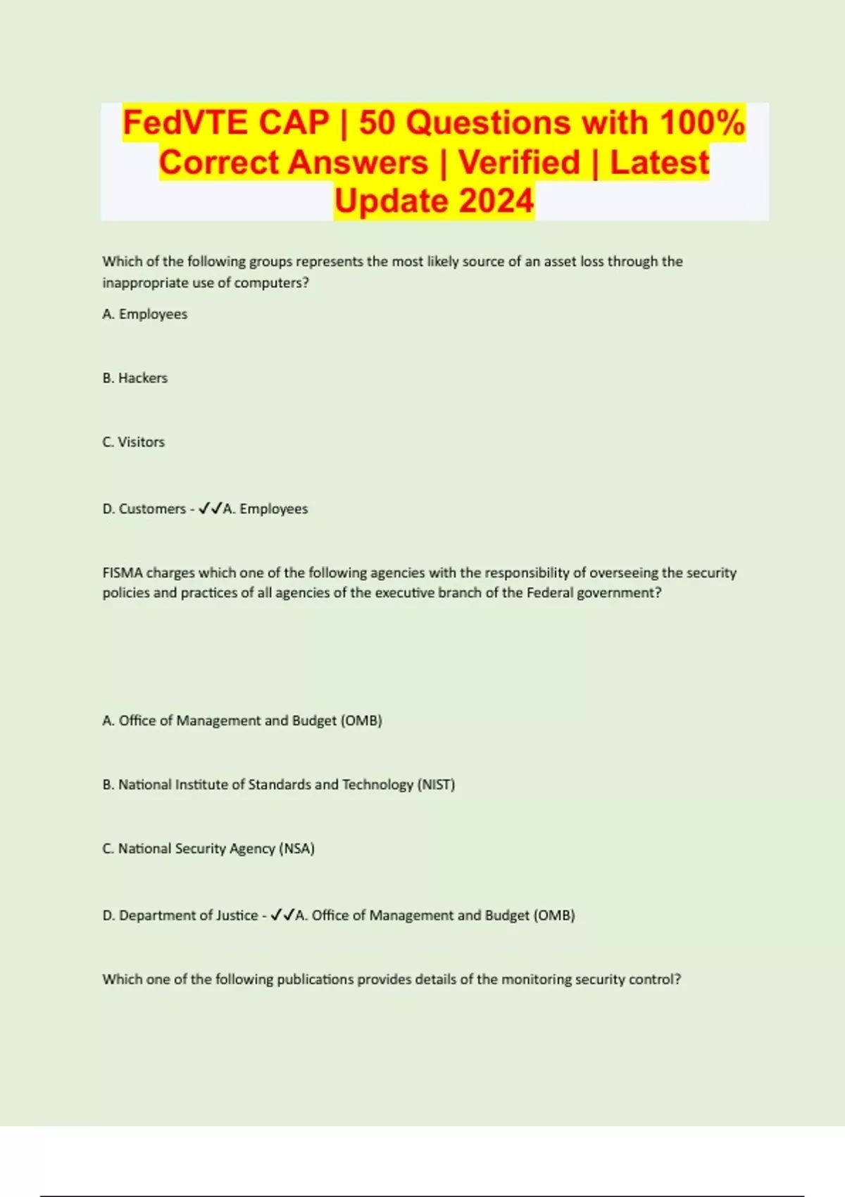 FedVTE CAP | 50 Questions with 100% Correct Answers | Verified | Latest Update 2024