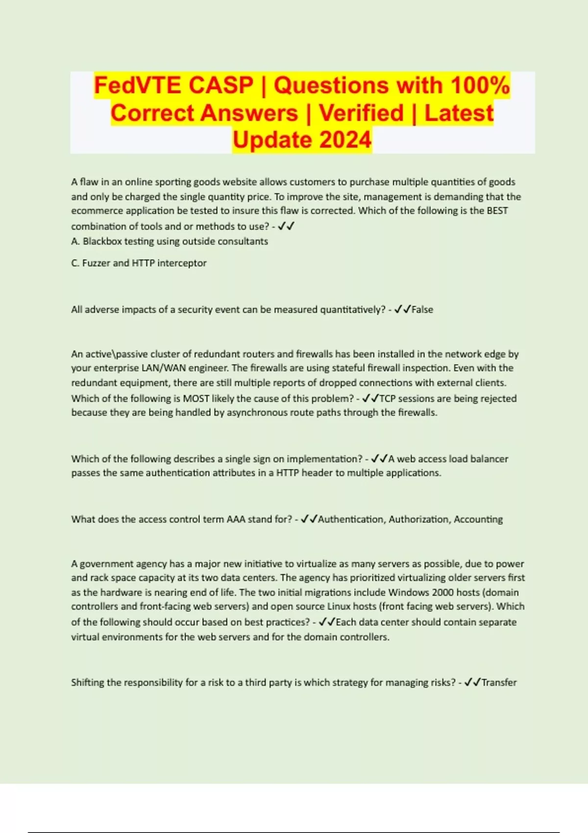 FedVTE CASP | Questions with 100% Correct Answers | Verified | Latest Update 2024