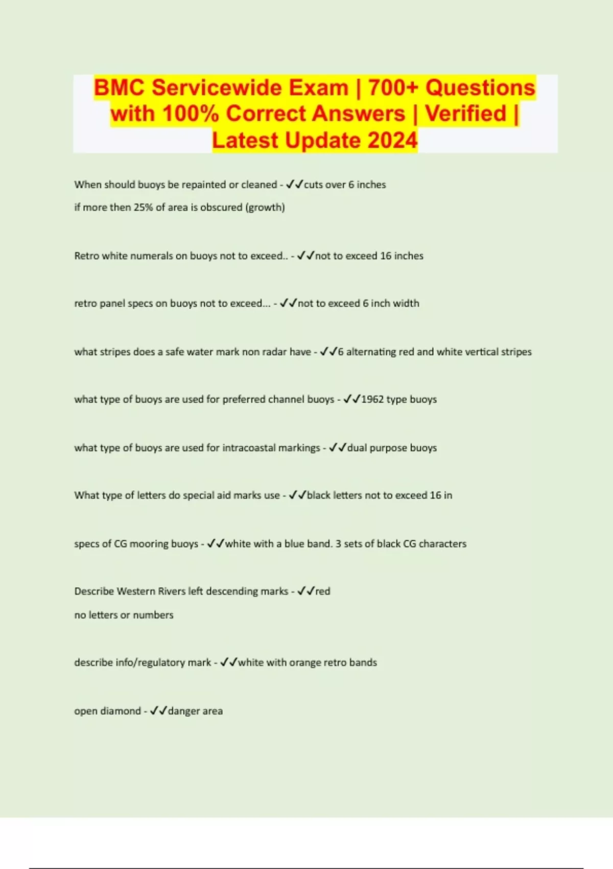 BMC Servicewide Exam | 700+ Questions with 100% Correct Answers | Verified | Latest Update 2024