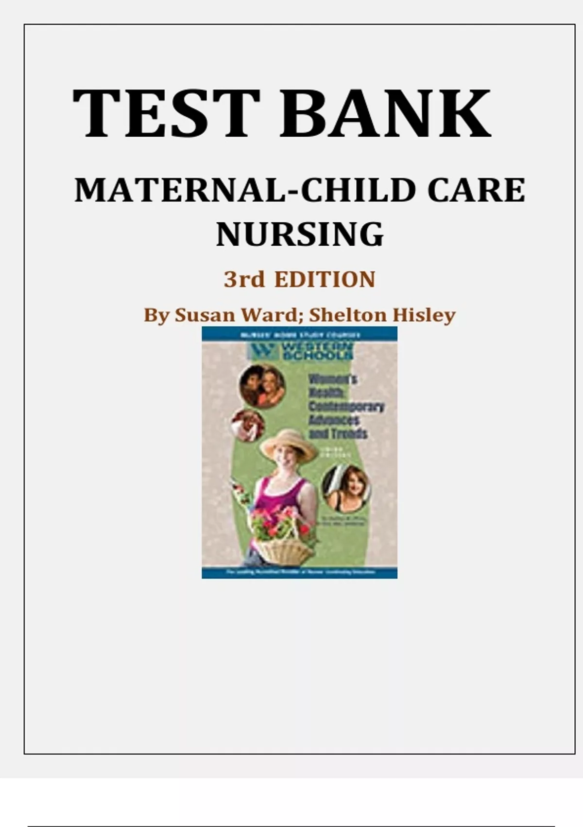 MATERNAL-CHILD CARE NURSING, 3RD EDITION BY SUSAN L. WARD; SHELTON HISLEY TEST BANK ISBN-978-1578012572 Latest Verified Review 2024 Practice Questions and Answers for Exam Preparation, 100% Correct with Explanations, Highly Recommended, Download to Score
