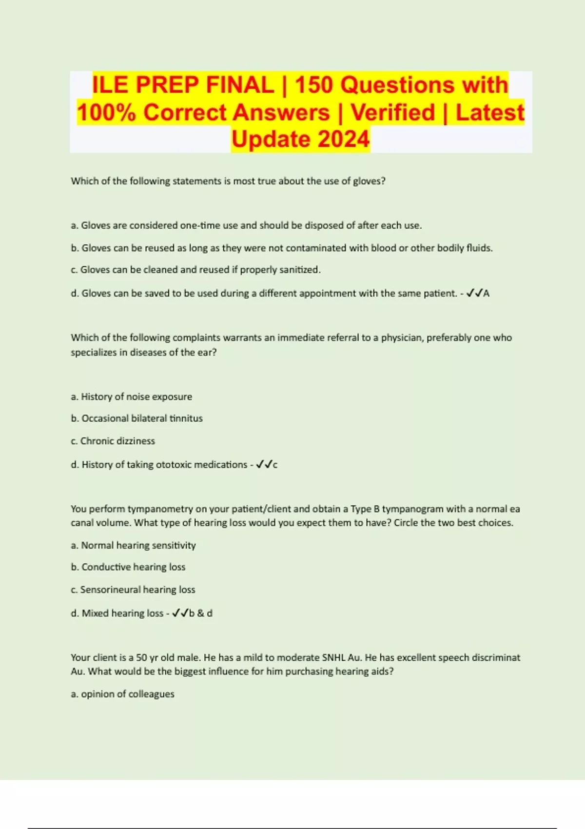 ILE PREP FINAL | 150 Questions with 100% Correct Answers | Verified | Latest Update 2024