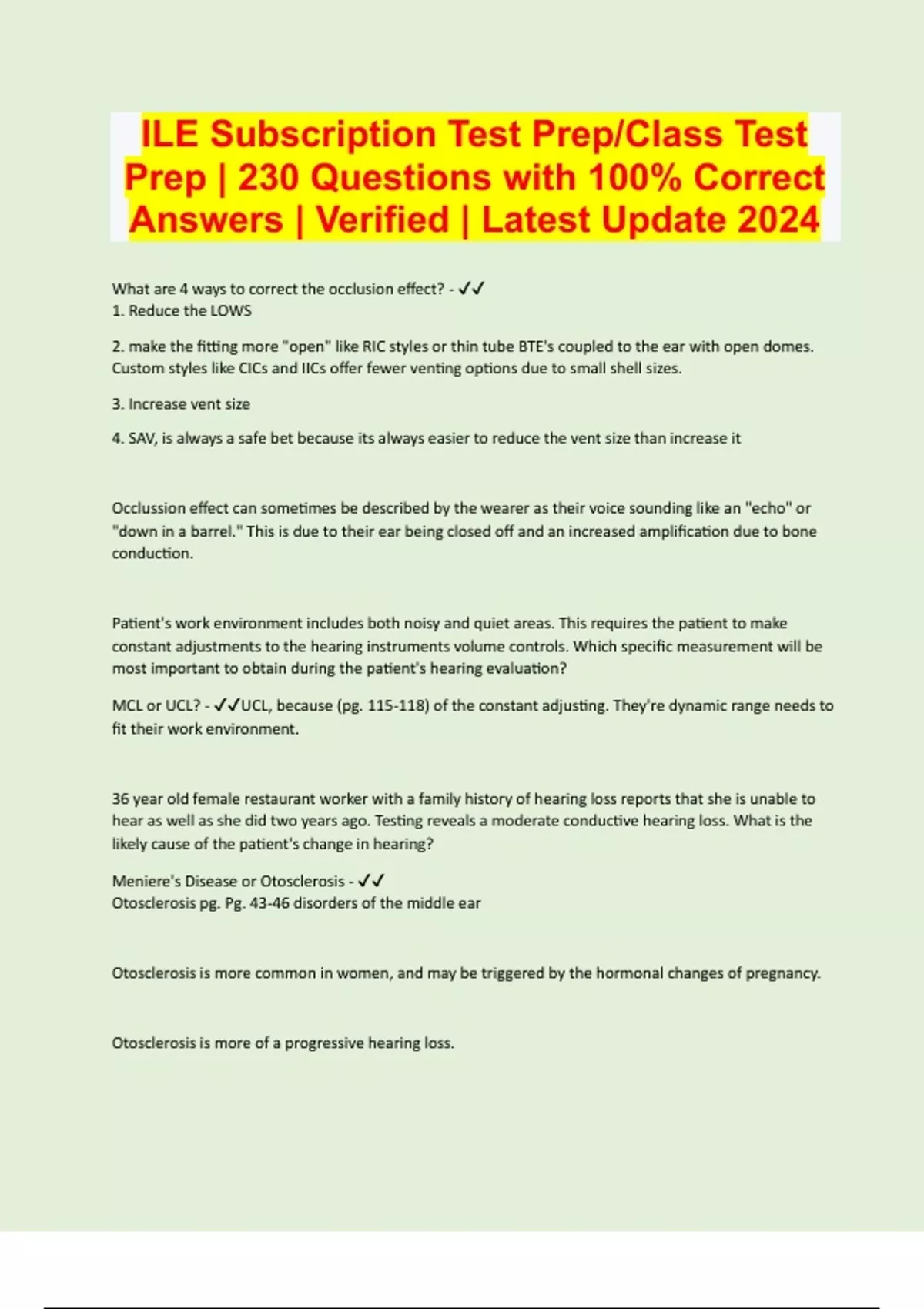 ILE Subscription Test Prep/Class Test Prep | 230 Questions with 100% Correct Answers | Verified | Latest Update 2024