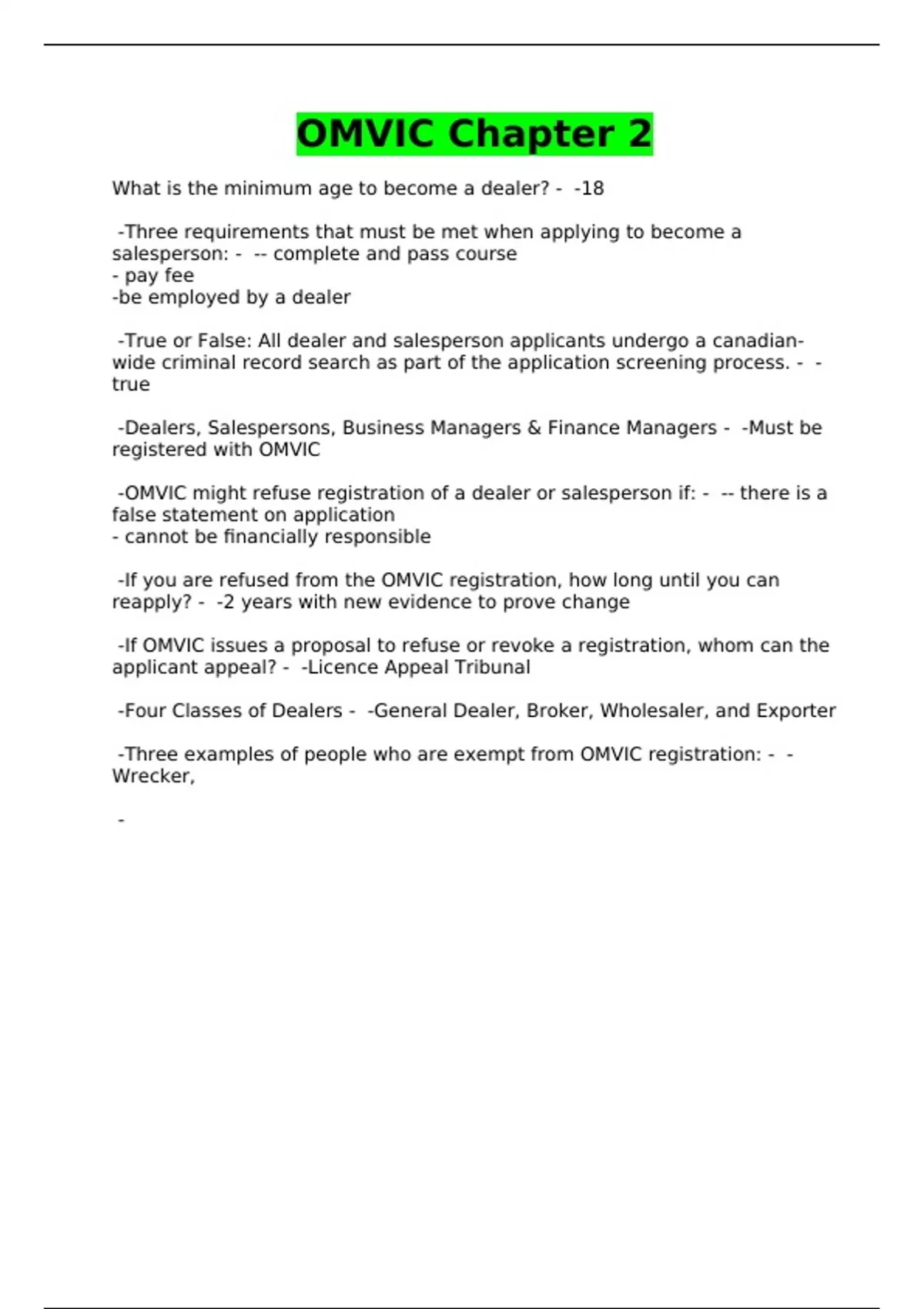 OMVIC Chapter 2