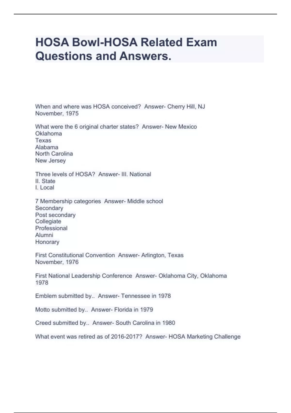 HOSA Bowl-HOSA Related Exam Questions and Answers.