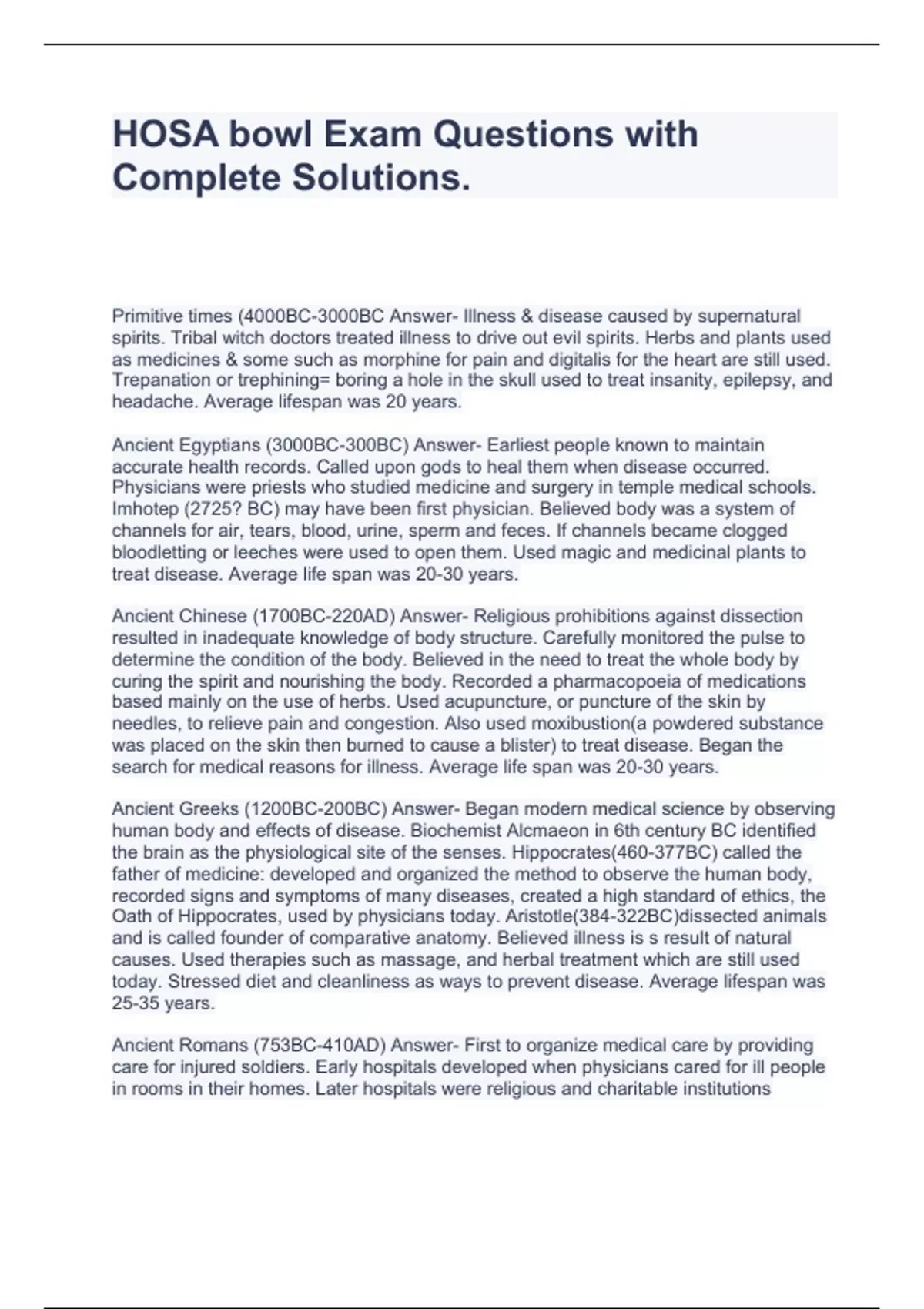 hosa bowl exam questions with complete solutions
