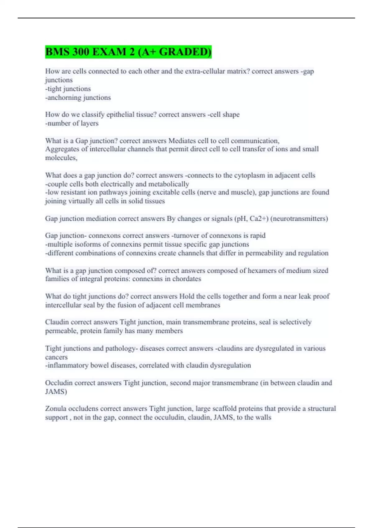 How are cells connected to each other and the extra-cellular matrix? correct answers -gap junctions -tight junctions -anchorning junctions How do we classify epithelial tissue? correct answers -cell shape -number of layers What is a Gap junction? correct answers Mediates cell to cell communication, Aggregates of intercellular channels that permit direct cell to cell transfer of ions and small molecules, What does a gap junction do? correct answers -connects to the cytoplasm in adjacent cells -couple cells both electrically and metabolically -low resistant ion pathways joining excitable cells (nerve and muscle), gap junctions are found joining virtually all cells in solid tissues Gap junction mediation correct answers By changes or signals (pH, Ca2+) (neurotransmitters) Gap junction- connexons correct answers -turnover of connexons is rapid -multiple isoforms of connexins permit tissue specific gap junctions -different combinations of connexins create channels that differ in permeability and regulation What is a gap junction composed of? correct answers composed of hexamers of medium sized families of integral proteins: connexins in chordates What do tight junctions do? correct answers Hold the cells together and form a near leak proof intercellular seal by the fusion of adjacent cell membranes Claudin correct answers Tight junction, main transmembrane proteins, seal is selectively permeable, protein family has many members Tight junctions and pathology- diseases correct answers -claudins are dysregulated in various cancers -inflammatory bowel diseases, correlated with claudin dysregulation Occludin correct answers Tight junction, second major transmembrane (in between claudin and JAMS) Zonula occludens correct answers Tight junction, large scaffold proteins that provide a structural support , not in the gap, connect the occuludin, claudin, JAMS, to the walls