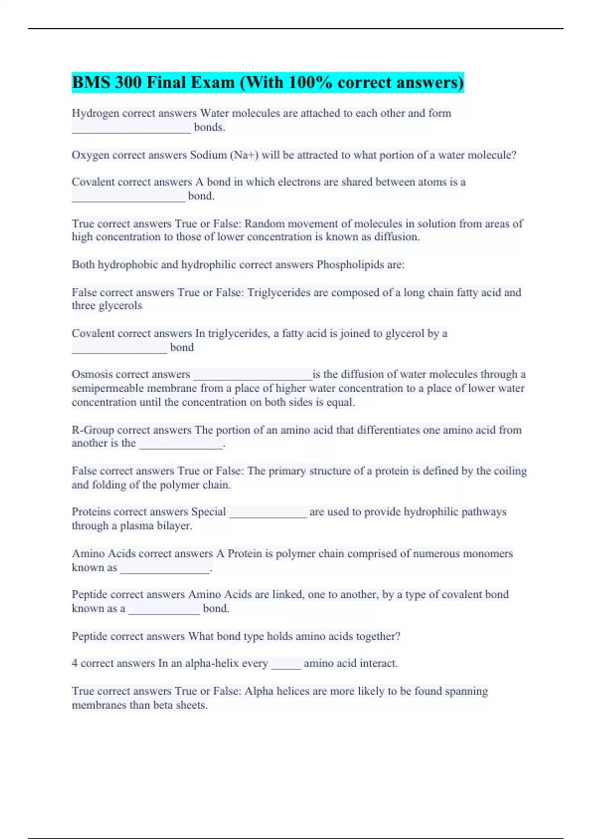 Peptide correct answers What bond type holds amino acids together?