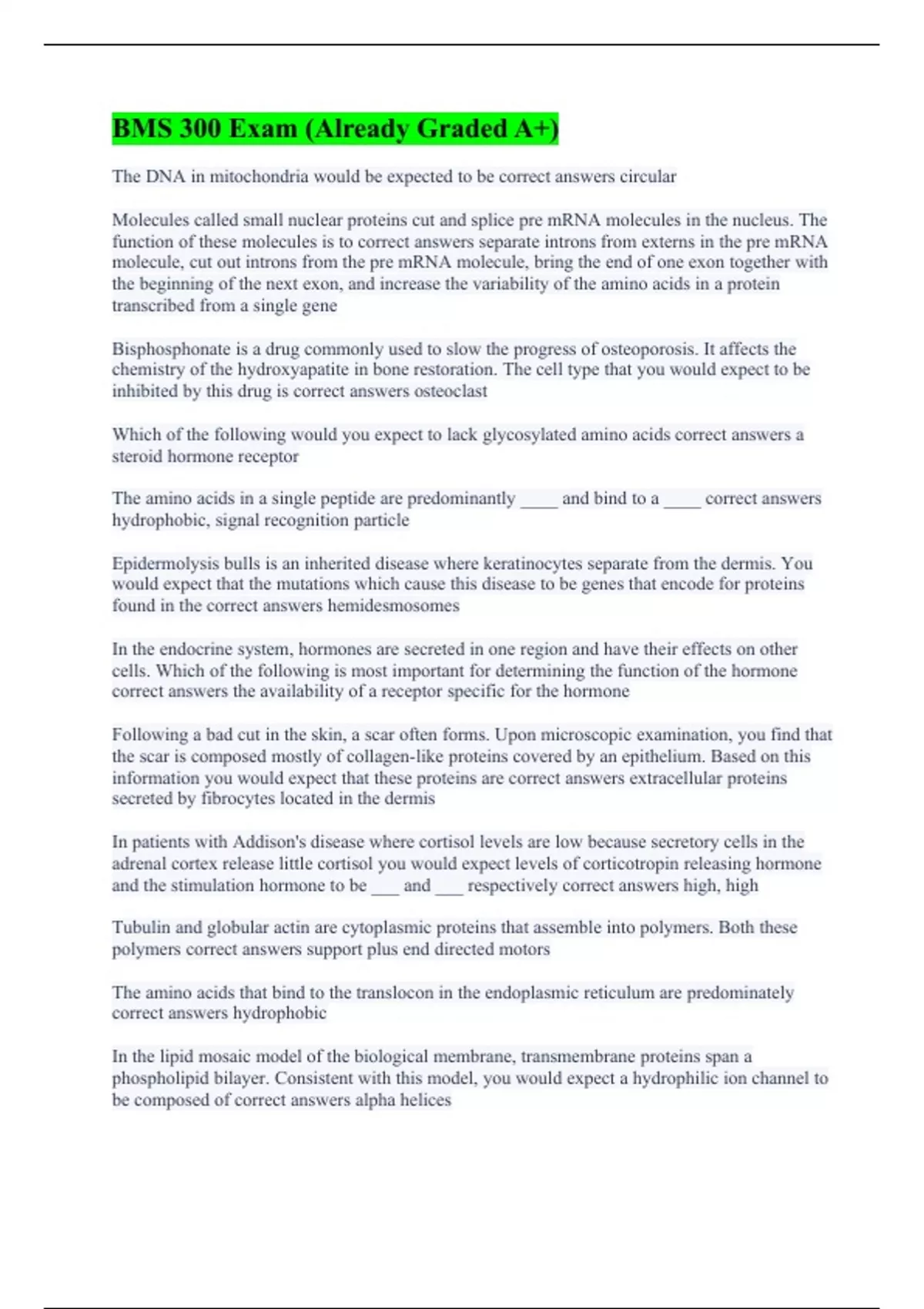 BMS 300 Exam (Already Graded A+)